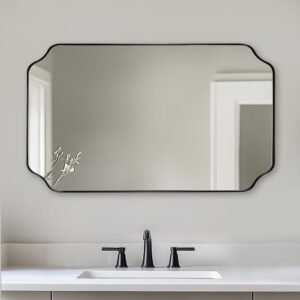 ANDY STAR 48×30 Inch Matte Black Rectangular Wall Bathroom Vanity Mirror