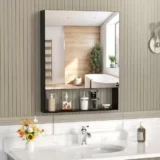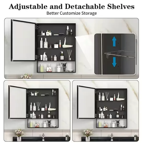 Enhance your bathroom storage with the incredibly functional and stylish Rectangular Medicine Cabinet with Mirror. This modern fixture perfectly blends form and utility, featuring a sleek, reflective mirrored surface that easily brightens up your space. It is designed to provide ample storage room for all of your daily essentials, keeping your vanity neat and organized. The integrated external shelf offers convenient, quick access for frequently used items or decorative accents, ensuring a highly customized and practical layout. Built for durability and everyday use, this cabinet is an excellent solution for anyone looking to maximize their bathroom space without sacrificing aesthetic appeal. Browse our catalog to discover how this highly versatile medicine cabinet can complete your next bathroom upgrade.