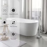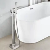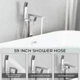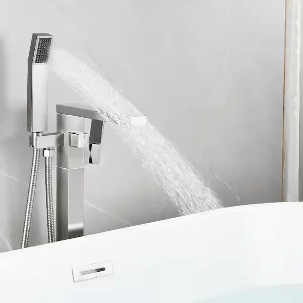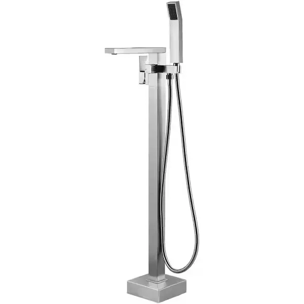 Elevate your bathroom space with the AKLFGN Floor Mount Roman Tub Faucet, a striking freestanding fixture designed to deliver both elegance and exceptional functionality. Built to complement modern bathtub setups, this tub filler features a single handle design that allows for effortless and precise control of water temperature and flow. It is paired with a convenient handheld shower wand that extends your reach, perfect for rinsing off or keeping your tub spotless. Engineered with durability and longevity in mind, this faucet is crafted to meet the highest standards of performance while adding a bold visual statement to your room. Available in a luxurious Chrome Gold finish, as well as Brushed Nickel, Gold, Brushed Gold, and Matte Black to perfectly match your bathroom decor. Browse our catalog to discover how this beautifully crafted tub filler can complete your bathing oasis.