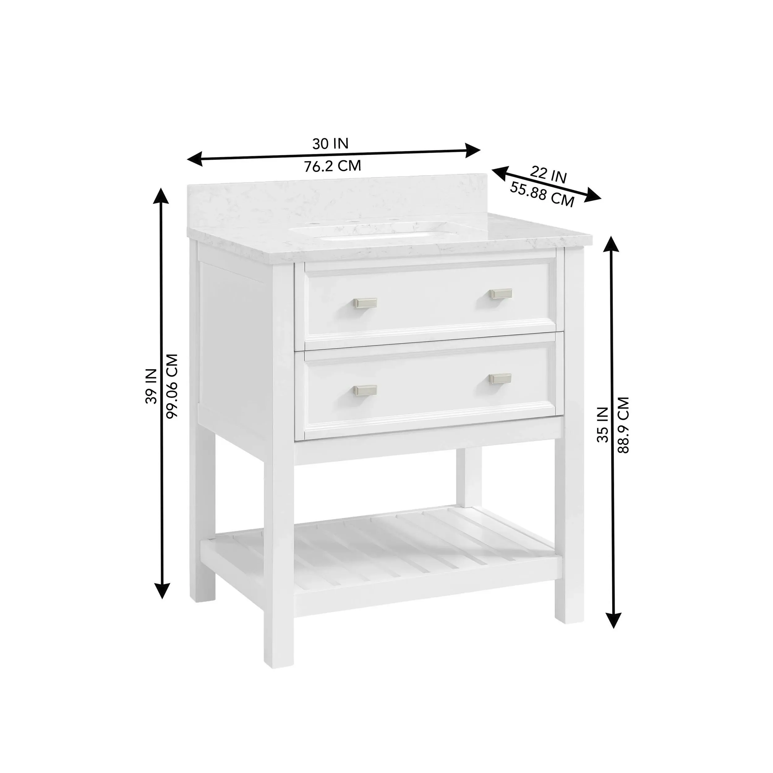 allen + roth Canterbury 30-in White Undermount Single Sink Bathroom Vanity with Carrara Engineered Marble Top