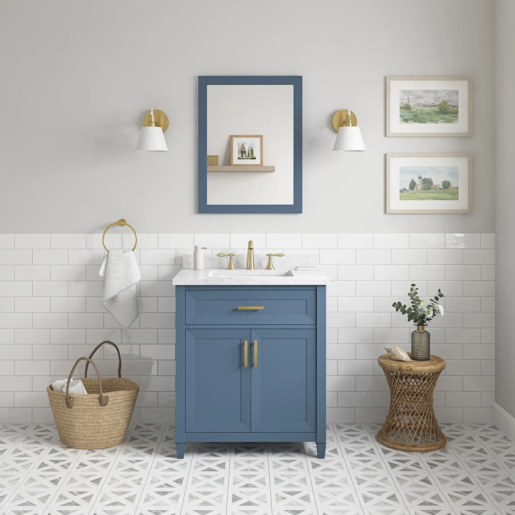 allen + roth Lancashire 30-in Chambray Blue Undermount Single Sink Bathroom Vanity with White Engineered Stone Top