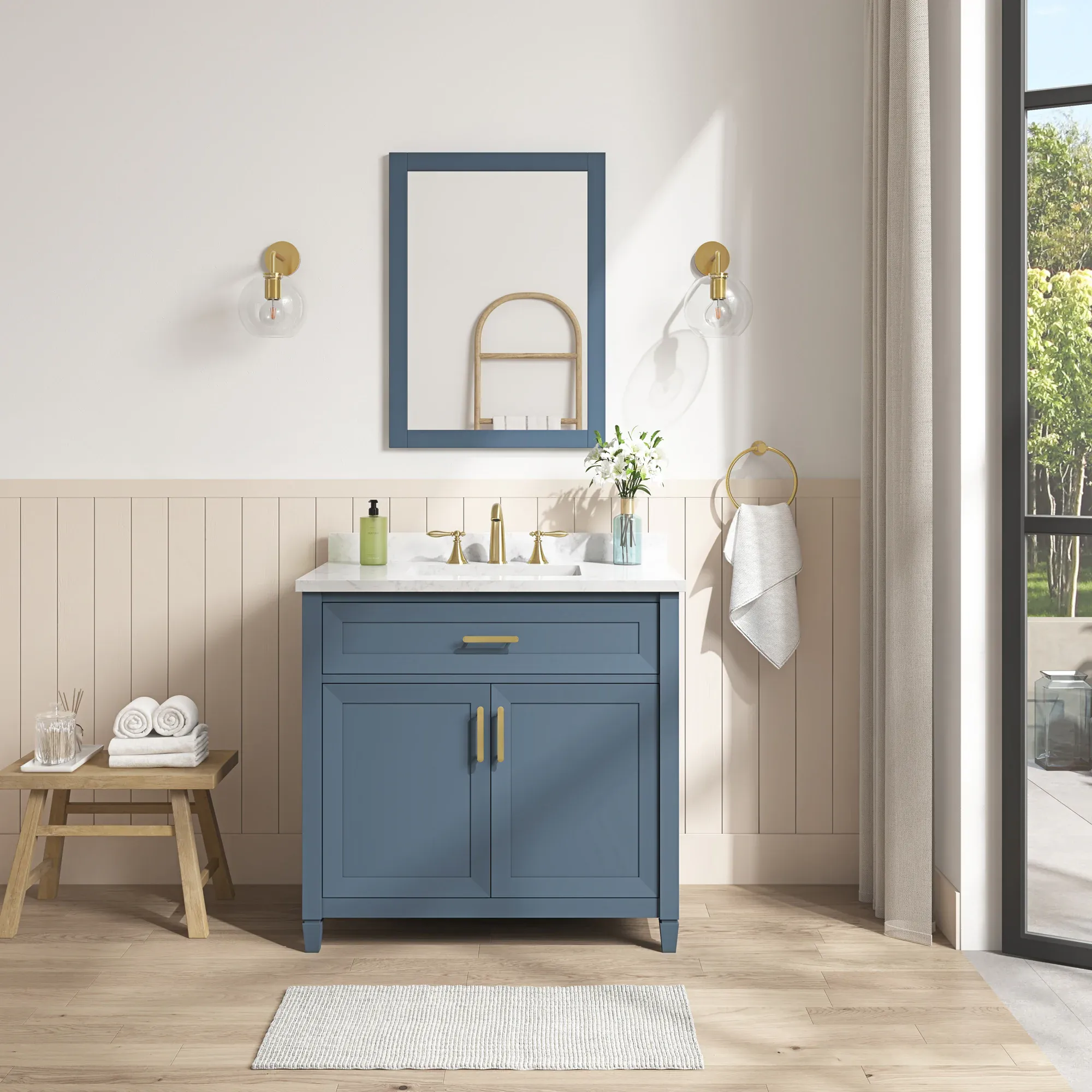 allen + roth Lancashire 36-in Chambray Blue Undermount Single Sink Bathroom Vanity with White Engineered Stone Top