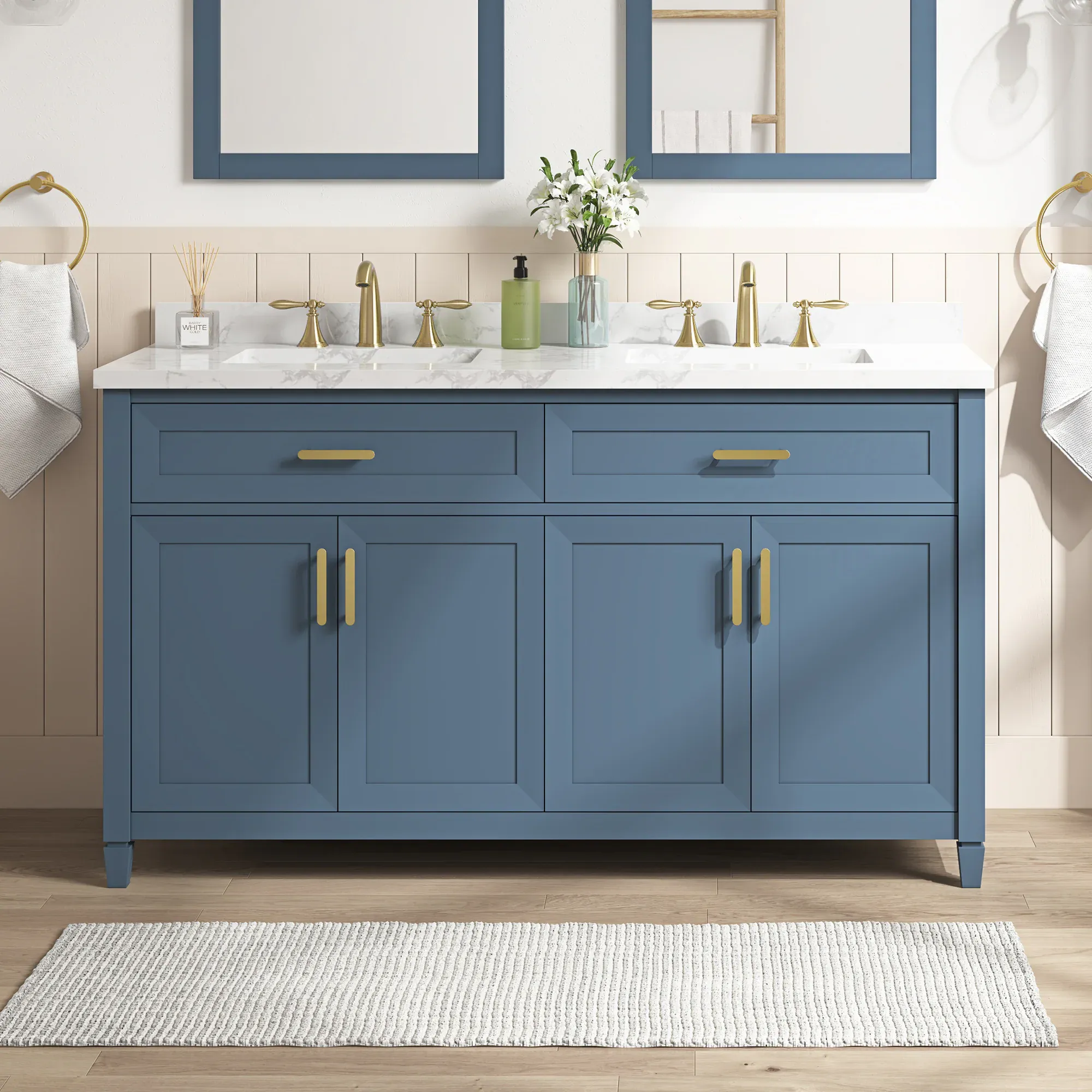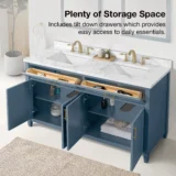 allen + roth Lancashire 60-in Chambray Blue Undermount Double Sink Bathroom Vanity with White Engineered Stone Top