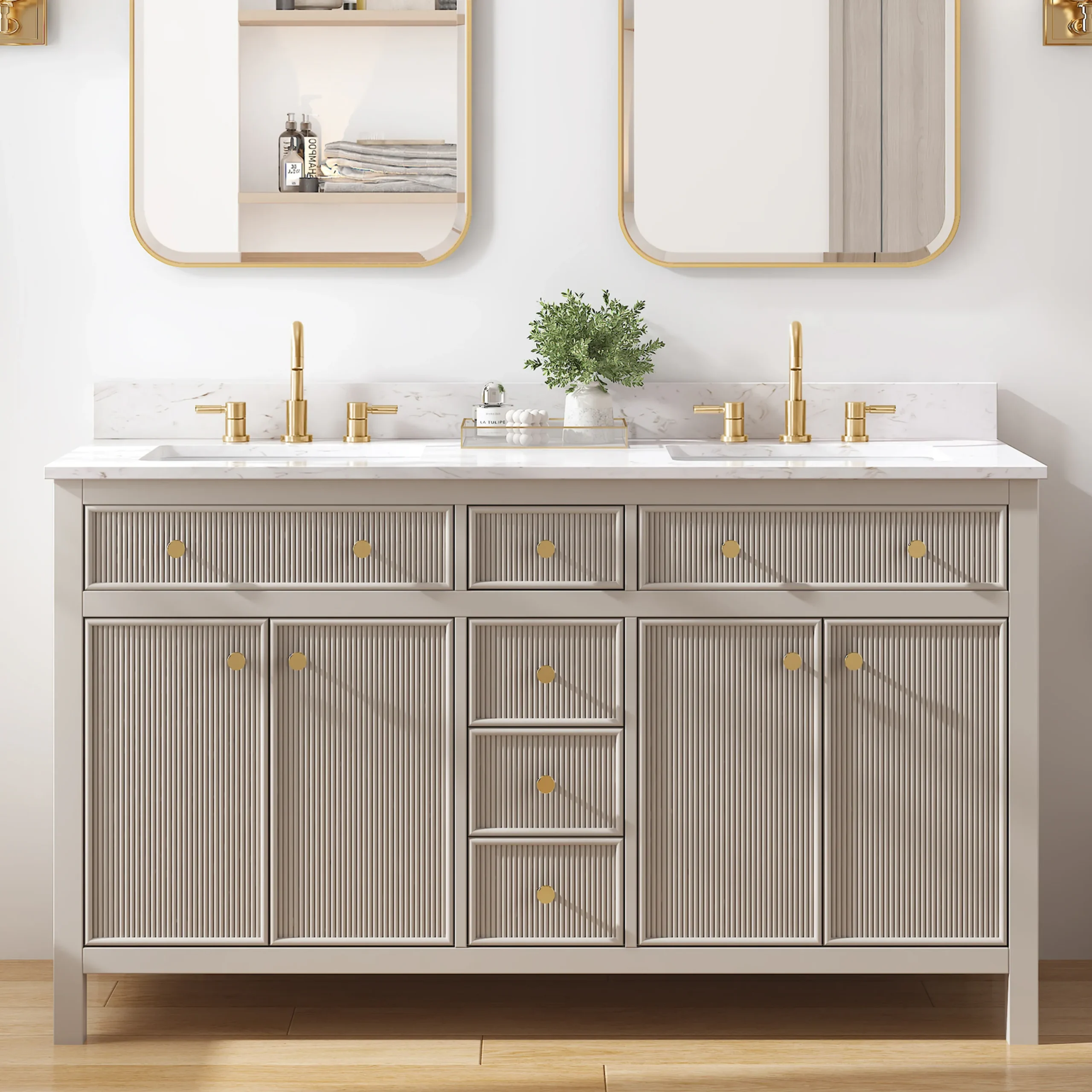 allen + roth Sandbanks 60-in Flaxen Greige Undermount Single Sink Bathroom Vanity