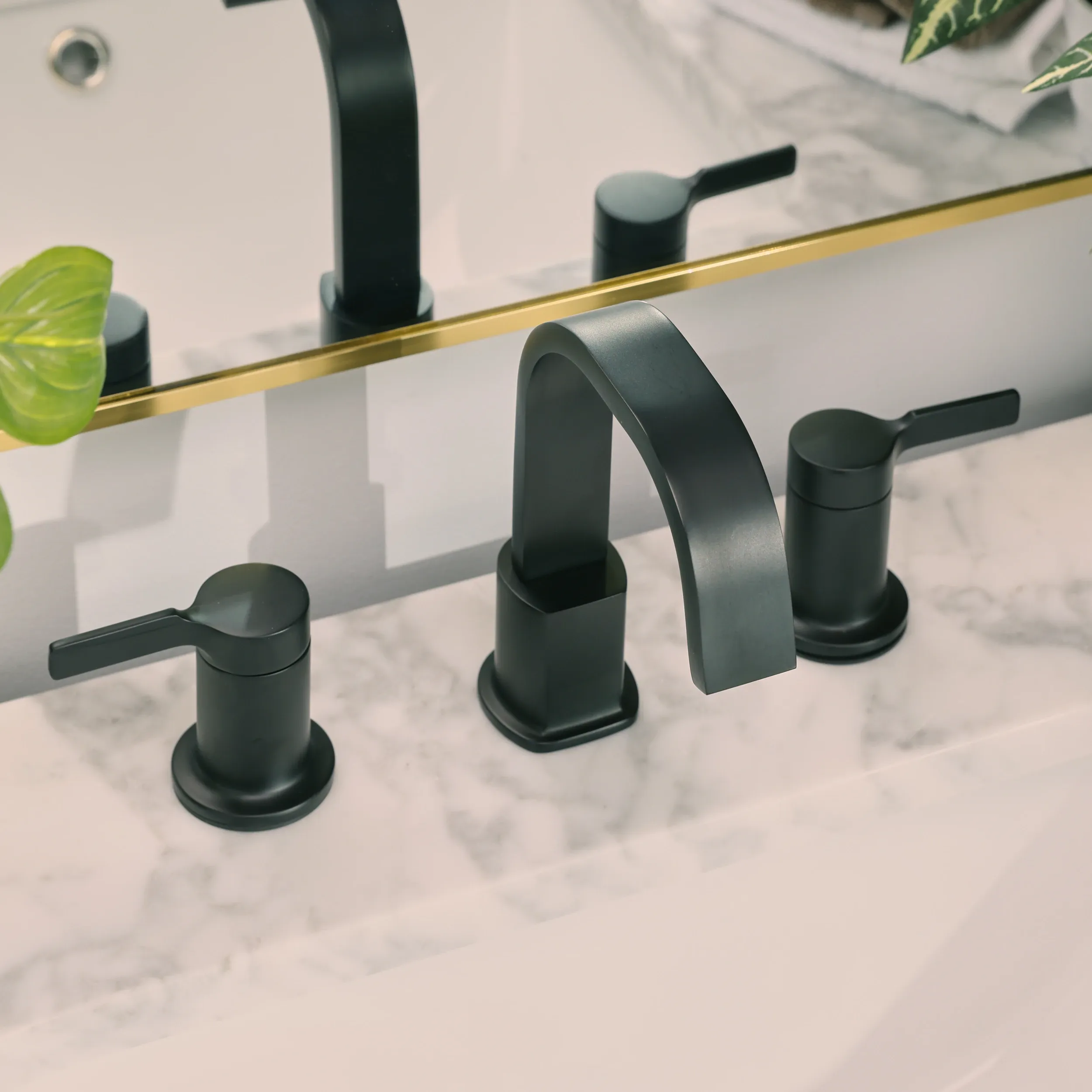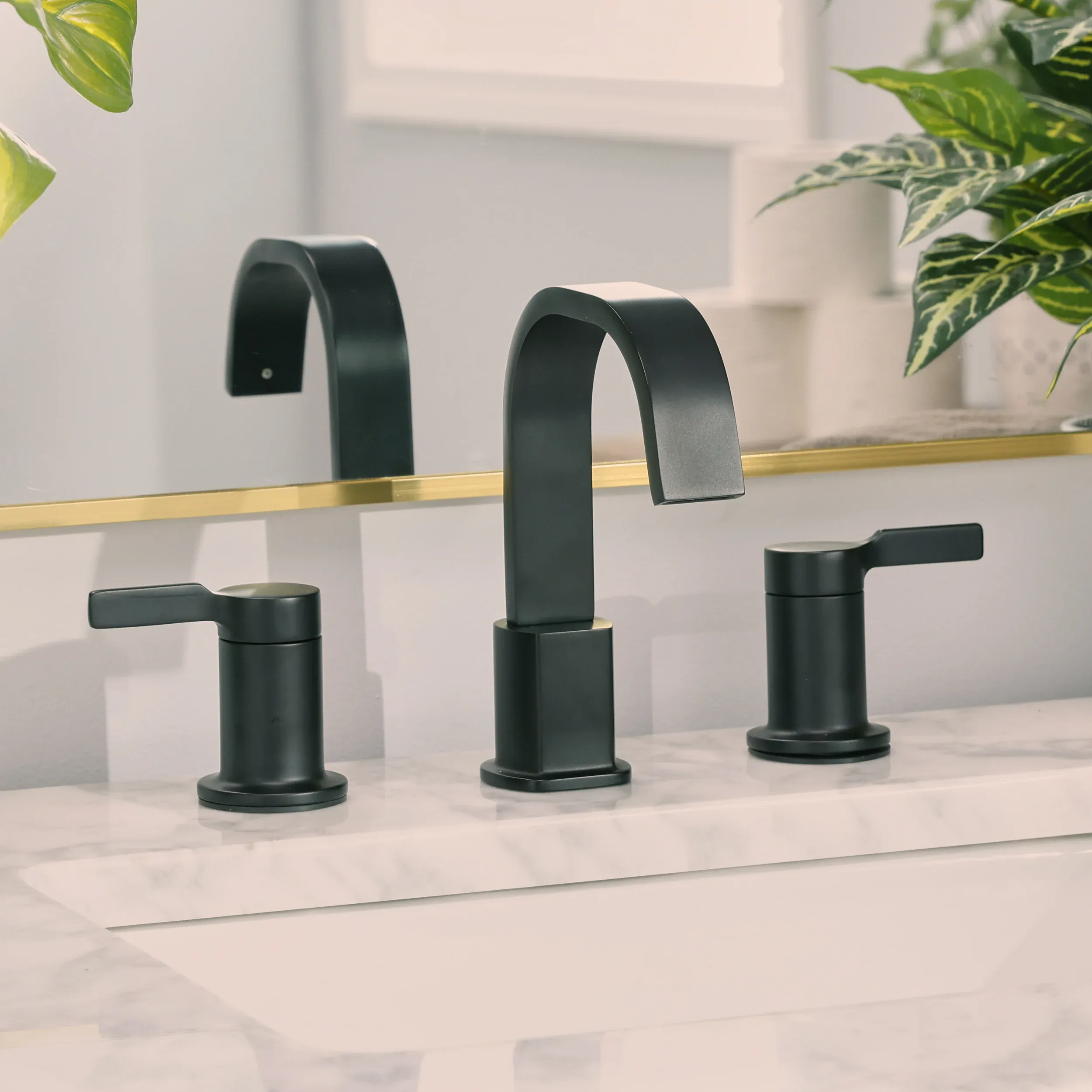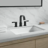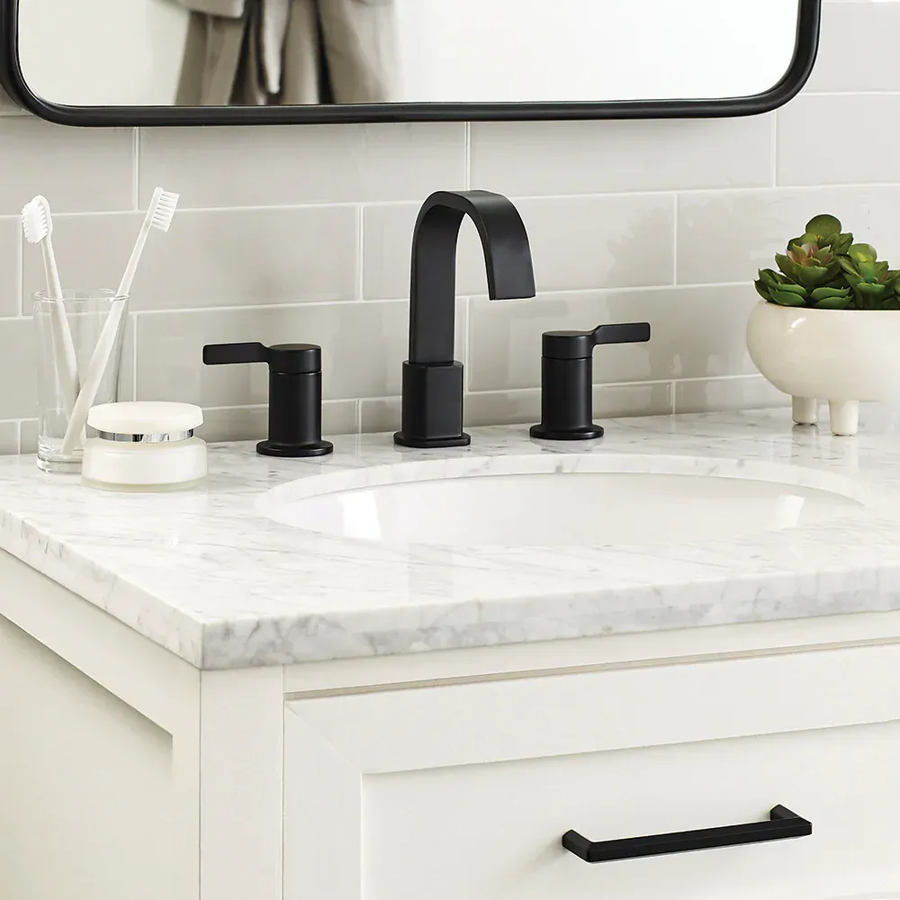 Elevate your bathroom remodel with the sleek and modern aesthetic of the allen + roth Veda Widespread Bathroom Sink Faucet. Designed to bring a timeless yet contemporary feel to your vanity, this double handle faucet features a graceful high arc spout that provides ample space for daily routines. It is built with a high quality ceramic disc valve to ensure smooth, reliable, and drip free operation for years to come. Engineered for both durability and efficiency, the corrosion resistant fixture is WaterSense labeled, delivering a steady 1.2 gallons per minute to help conserve water without sacrificing pressure. Installation is a breeze thanks to the included quick connect SecureConX lines and an easy to use Twist Drain that requires no specialized tools. Perfectly designed to fit standard 3 hole widespread configurations, this faucet seamlessly coordinates with other items in the Veda collection. Available in a variety of stunning finishes including Matte Black, Brushed Bronze, Brushed Nickel, and Chrome. Browse our catalog to discover how this elegant and practical fixture can transform your home.