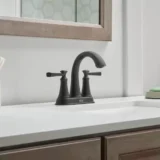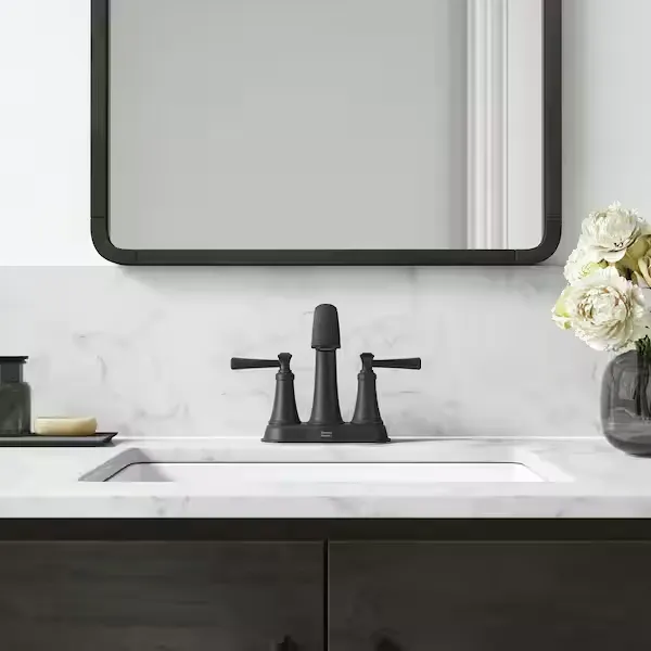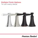 Complete your bathroom remodel with the American Standard Rumson Centerset Bathroom Faucet, a perfect blend of traditional style and modern reliability. Engineered for lasting durability, this faucet features a gracefully arched spout and sturdy lever handles that deliver a classic and stately look. The high quality ceramic disc valve ensures a lifetime of drip free performance, while the lustrous Matte Black finish is specifically designed to be tarnish, scratch, and corrosion resistant. As a WaterSense certified fixture, it uses a highly efficient 1.2 gallons per minute, helping you save water without sacrificing performance. Designed for easy installation in a standard 3 hole sink configuration, the set also includes a convenient push drain for quick removal of clogs. Available in versatile finishes including Matte Black, Brushed Nickel, Polished Chrome, and Legacy Bronze to perfectly match your aesthetic. Browse our catalog to discover how this enduring fixture can add practicality and beauty to your next bathroom update.
