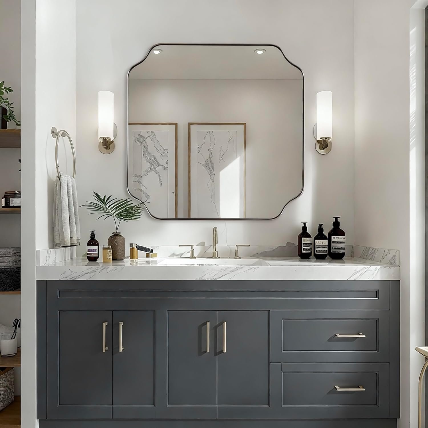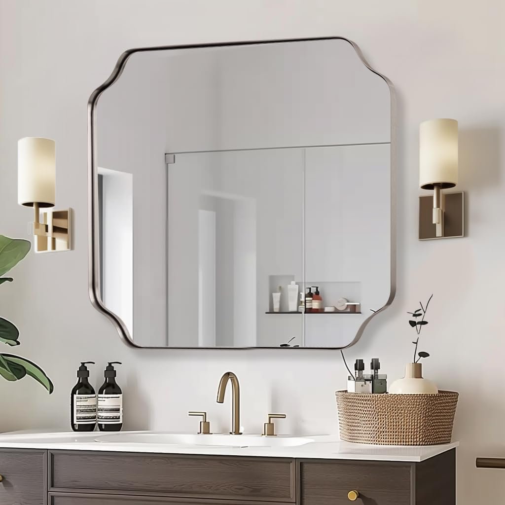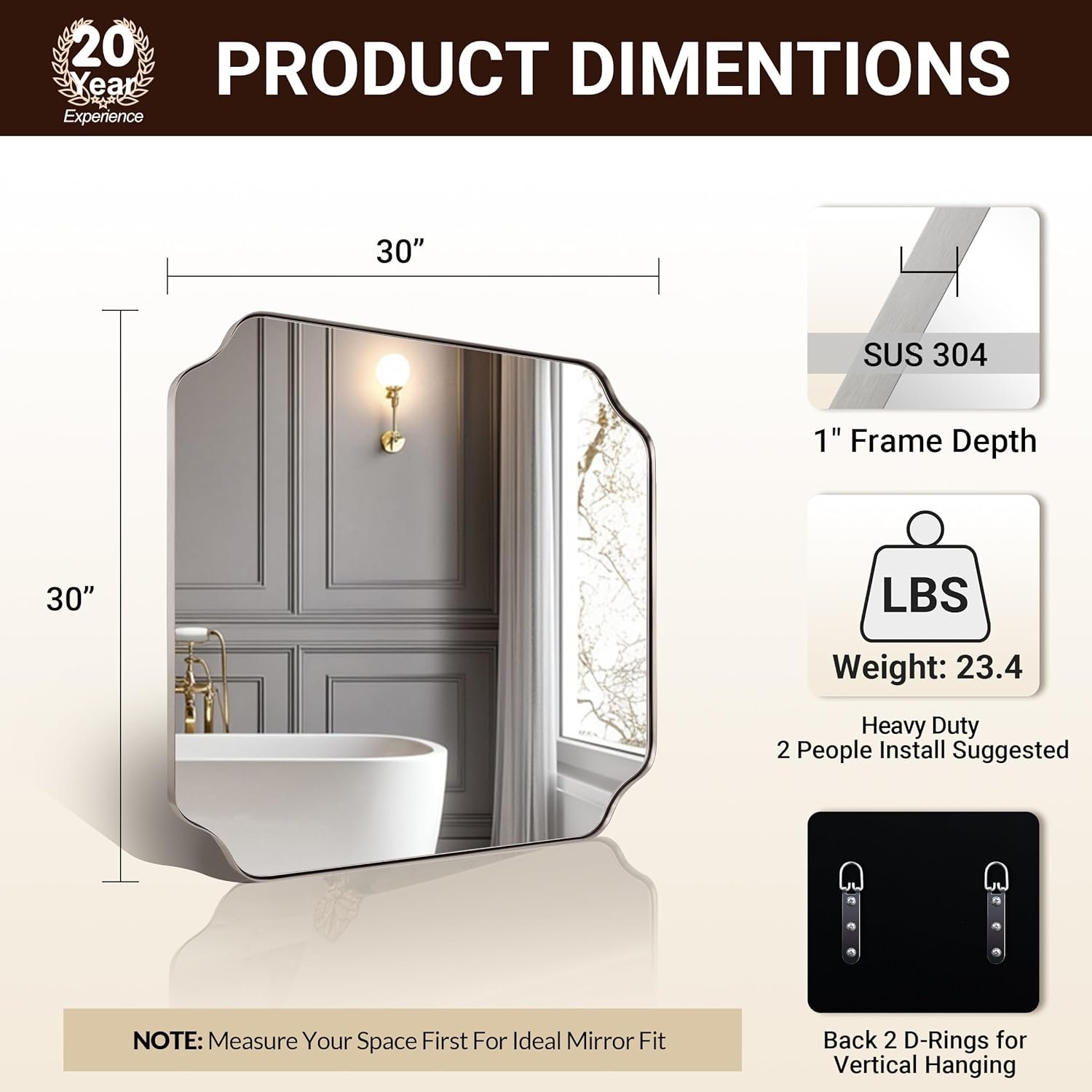 ANDY STAR 30×30 Inch Brushed Nickel Rectangular Wall Bathroom Vanity Mirror