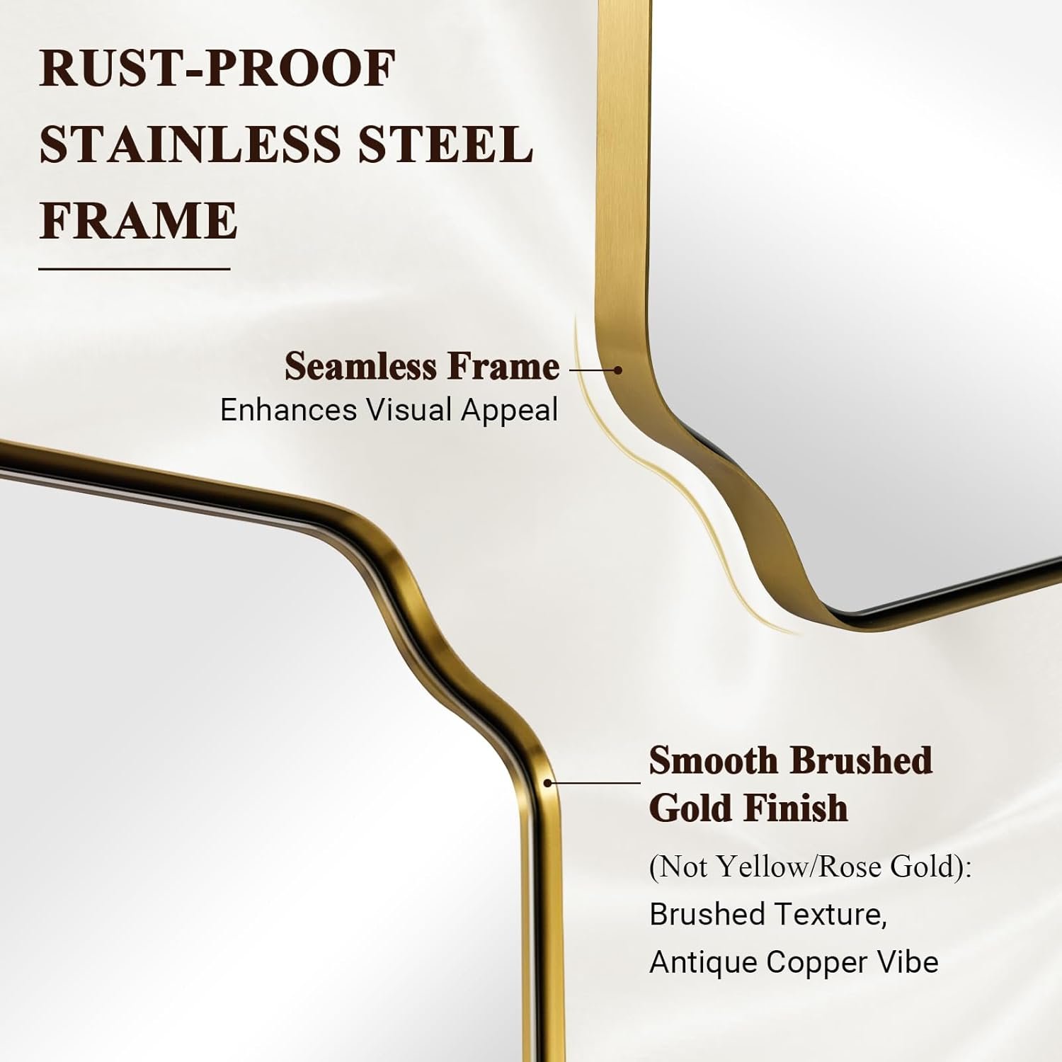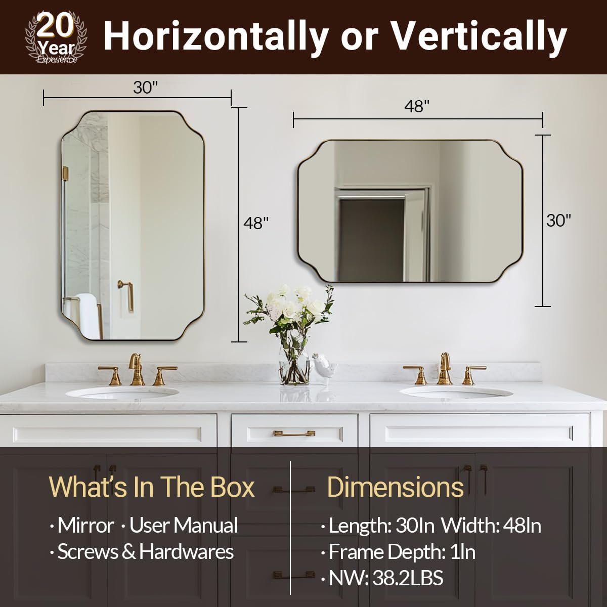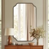Elevate your space with the timeless elegance of the ANDY STAR Rectangular Wall Bathroom Vanity Mirror. Featuring a classic rectangular design with an ultra durable stainless steel frame, this mirror brings a polished and chic look to any bathroom or entryway. It is constructed with upgraded high definition 4 mm glass to ensure crystal clear, distortion free reflections for your daily routines. The sturdy, fingerprint proof metal frame resists rust and oxidation, making it highly reliable for damp environments. For added safety, the glass is reinforced with an explosion proof backing to prevent shattering. Designed for complete versatility, it includes pre installed D rings that allow for secure mounting in either a horizontal or vertical orientation to perfectly suit your specific layout. Browse our catalog to discover how this beautifully crafted mirror can seamlessly enhance your home decor.