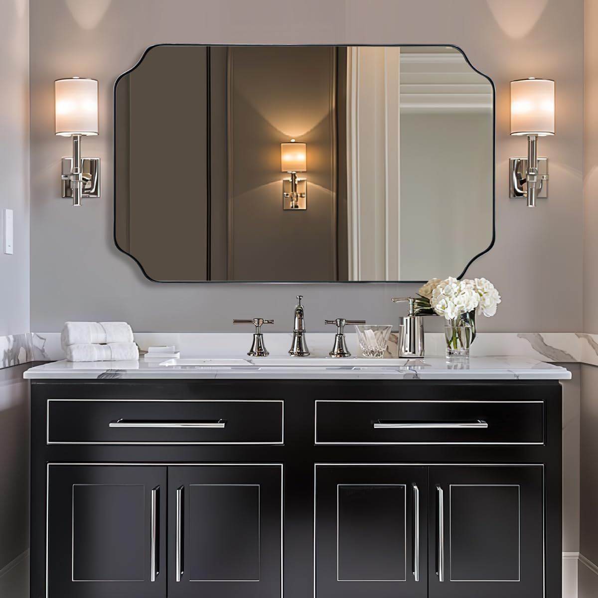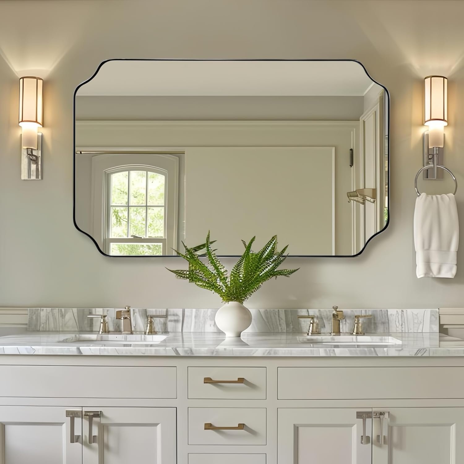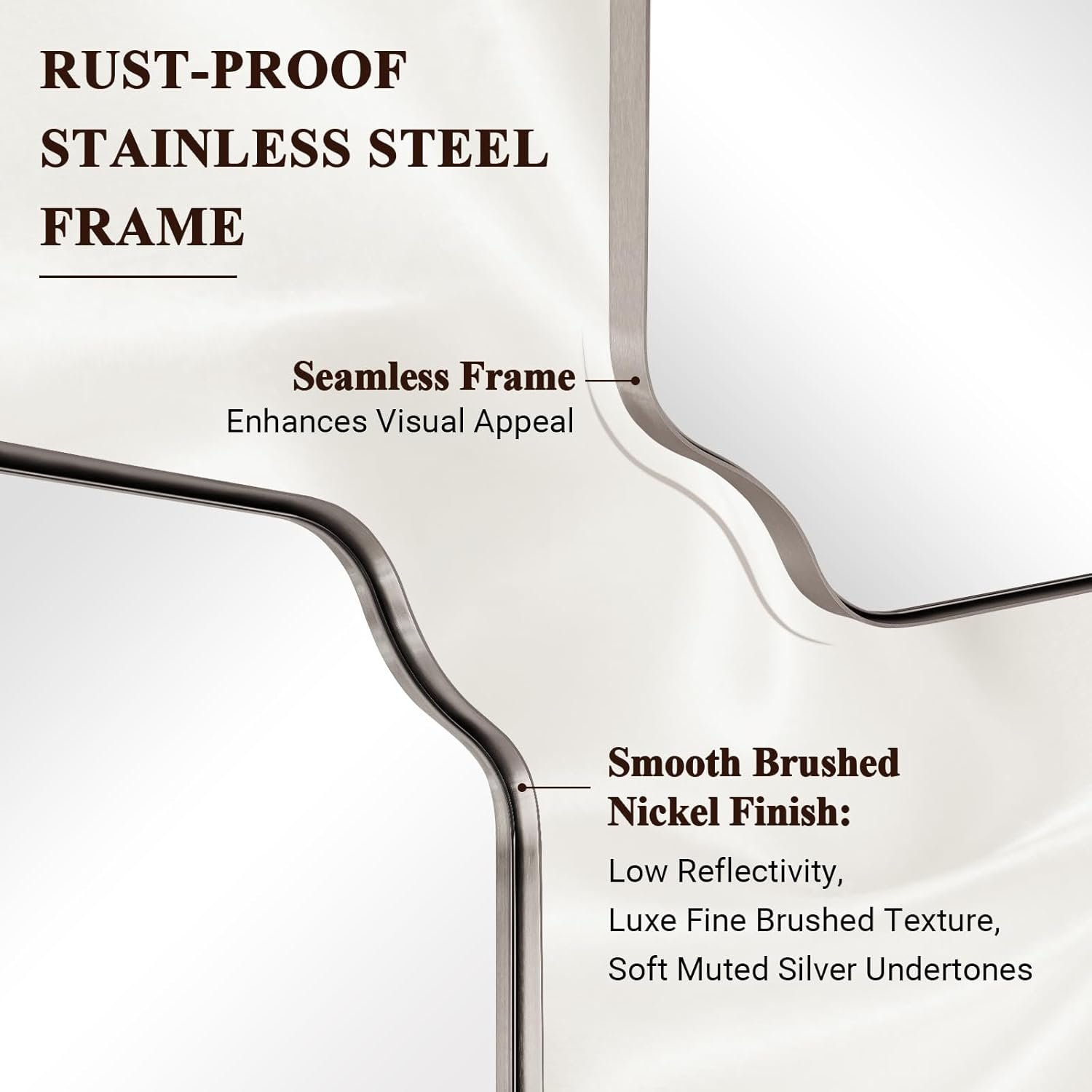 Elevate your space with the timeless elegance of the ANDY STAR Rectangular Wall Bathroom Vanity Mirror. Featuring a classic rectangular design with an ultra durable stainless steel frame, this mirror brings a polished and chic look to any bathroom or entryway. It is constructed with upgraded high definition 4 mm glass to ensure crystal clear, distortion free reflections for your daily routines. The sturdy, fingerprint proof metal frame resists rust and oxidation, making it highly reliable for damp environments. For added safety, the glass is reinforced with an explosion proof backing to prevent shattering. Designed for complete versatility, it includes pre installed D rings that allow for secure mounting in either a horizontal or vertical orientation to perfectly suit your specific layout. Browse our catalog to discover how this beautifully crafted mirror can seamlessly enhance your home decor.