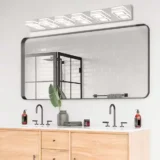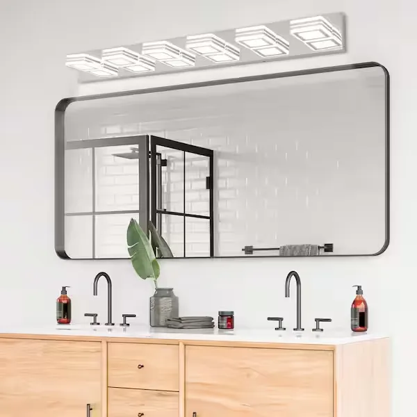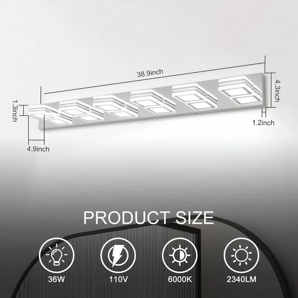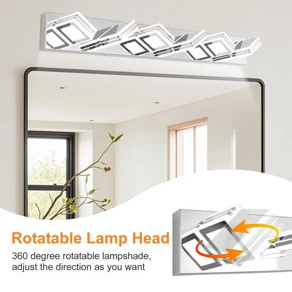 Add a touch of futuristic minimalism to your space with the AVITAS Modern Bathroom LED Vanity Light. Featuring a geometric cascading design with sharp, layered lines, this fixture seamlessly pairs a rust resistant iron frame with high translucent acrylic shades. Each lamp head is designed to rotate a full 360 degrees, allowing you to easily adjust and direct the angle of the light exactly where you need it. The integrated energy efficient LED light source delivers a bright, cool white 6000K illumination that transmits softly and evenly through the durable, scratch resistant acrylic. Generating significantly less heat than traditional incandescent fixtures, it helps keep your bathroom comfortably cool while completely eliminating the need for bulb replacements. Built for a simple installation, it comes hardwired with a standard backplate and includes all the necessary mounting hardware to easily upgrade your setup. Browse our catalog to discover how this highly customizable and reliable light can beautifully brighten your daily routine.
