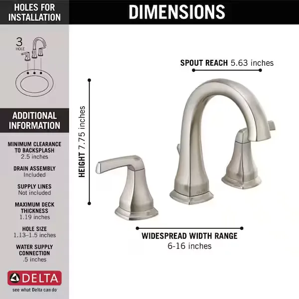Elevate your bathroom remodel with the Delta Portwood Widespread Bathroom Faucet, a fixture that beautifully blends classic curves and softened angles for a polished look. Designed for both form and function, this double handle faucet features a durable Venetian Bronze finish that is tested to withstand daily wear and resist corrosion. It includes the innovative Delta Worry Free Drain Catch, a simple and effective solution designed to prevent pills, jewelry, or other valuables from washing down the drain. With a reliable valve cartridge tested to last over 500,000 uses, you can count on smooth handle operation and consistent, drip free performance. As an EPA certified WaterSense fixture, it uses at least 20 percent less water than industry standards without sacrificing flow, saving you money while conserving resources. This easy to install faucet securely fits standard 3 hole, 6 to 16 inch widespread configurations. Browse our catalog to discover how this timeless fixture can beautifully complete your next bathroom update.