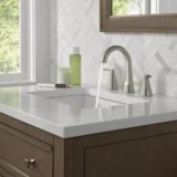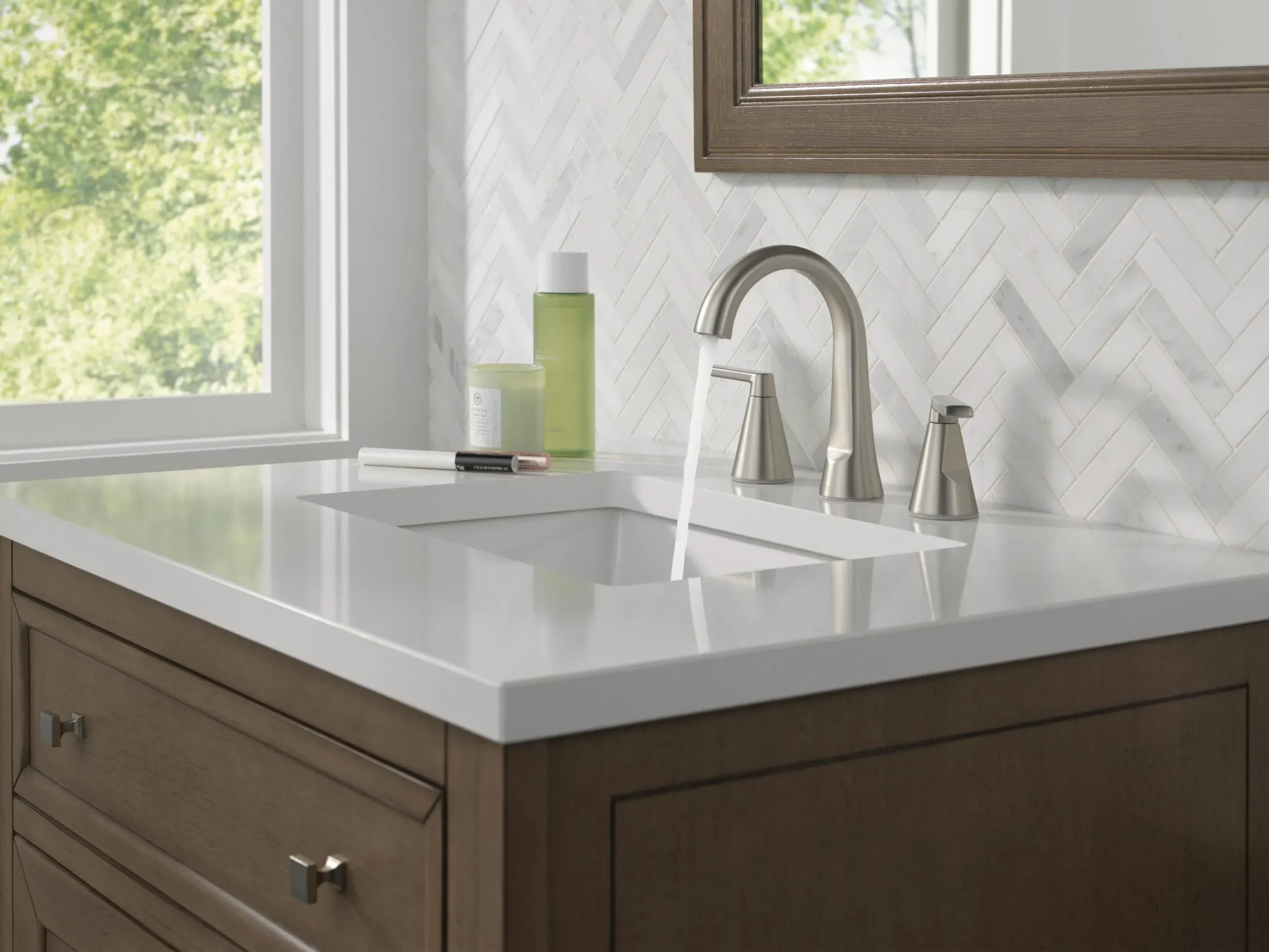Bring beautifully clean lines and subtle details to your bathroom remodel with the Delta Sparrow Widespread Bathroom Sink Faucet. Offering a flawless blend of transitional design and reliable functionality, this double handle faucet provides an elegant focal point for your vanity. The stunning Champagne Bronze soft gold finish is engineered with Brilliance technology to be exceptionally durable, standing up to over 100 household cleaners while resisting corrosion, tarnishing, and discoloration. Built to last, the internal valve cartridge is rigorously tested for over 500,000 uses to ensure incredibly smooth handle operation and consistent drip free performance. Designed for an easy DIY upgrade, it features a quick connect hose that audibly clicks into place and perfectly fits a standard 3 hole, 4 to 16 inch widespread configuration. The included metal push pop up drain easily unscrews from above the deck, making it incredibly simple to clean. As a WaterSense labeled fixture, it uses at least 20 percent less water than industry standards without ever compromising on water flow. Browse our catalog to discover how the Sparrow collection can elevate your next home renovation.