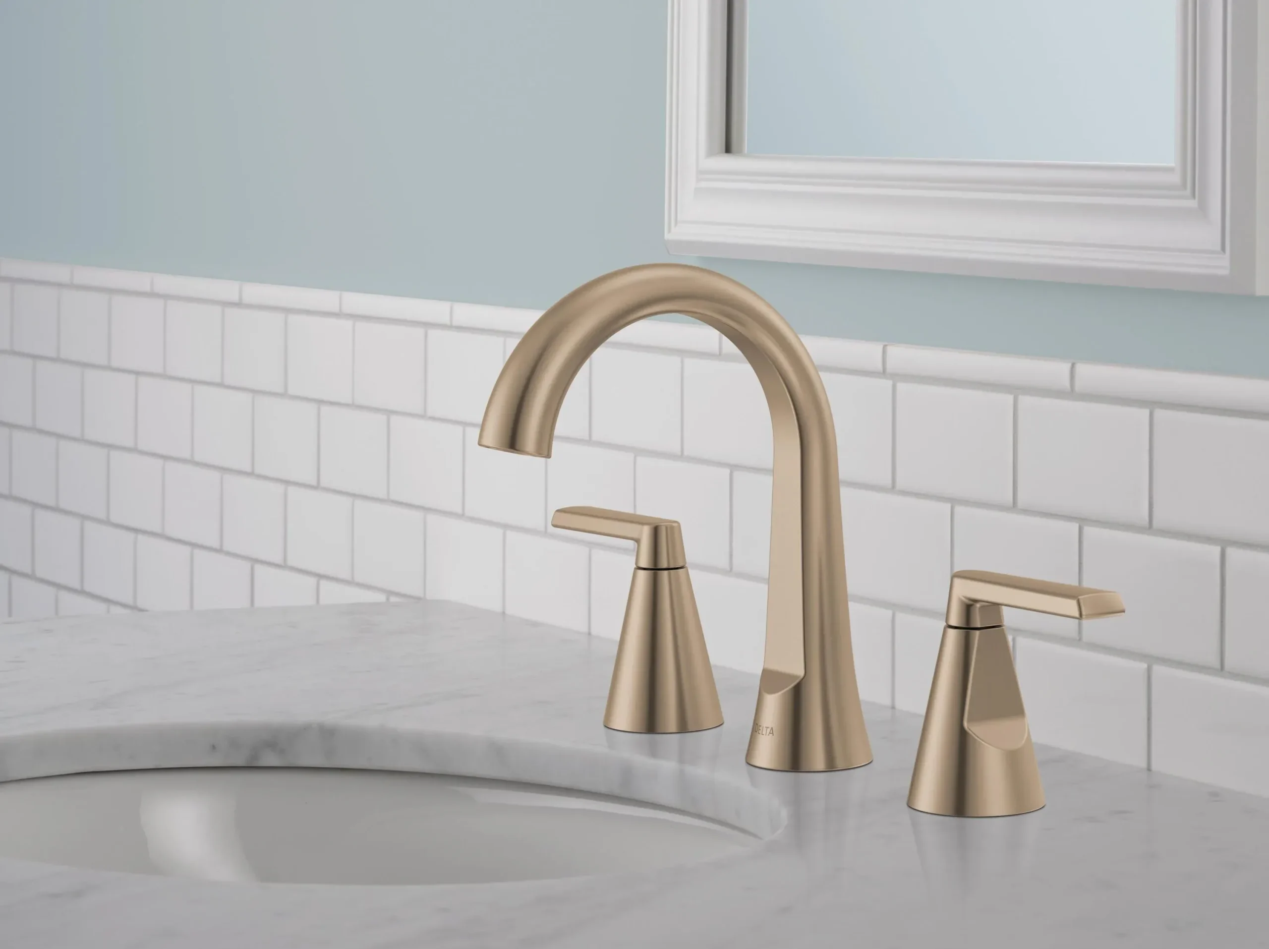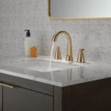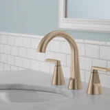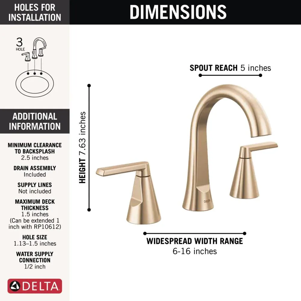 Bring beautifully clean lines and subtle details to your bathroom remodel with the Delta Sparrow Widespread Bathroom Sink Faucet. Offering a flawless blend of transitional design and reliable functionality, this double handle faucet provides an elegant focal point for your vanity. The stunning Champagne Bronze soft gold finish is engineered with Brilliance technology to be exceptionally durable, standing up to over 100 household cleaners while resisting corrosion, tarnishing, and discoloration. Built to last, the internal valve cartridge is rigorously tested for over 500,000 uses to ensure incredibly smooth handle operation and consistent drip free performance. Designed for an easy DIY upgrade, it features a quick connect hose that audibly clicks into place and perfectly fits a standard 3 hole, 4 to 16 inch widespread configuration. The included metal push pop up drain easily unscrews from above the deck, making it incredibly simple to clean. As a WaterSense labeled fixture, it uses at least 20 percent less water than industry standards without ever compromising on water flow. Browse our catalog to discover how the Sparrow collection can elevate your next home renovation.
