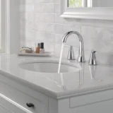 Bring beautifully clean lines and subtle details to your bathroom remodel with the Delta Sparrow Widespread Bathroom Sink Faucet. Offering a flawless blend of transitional design and reliable functionality, this double handle faucet provides an elegant focal point for your vanity. The stunning Champagne Bronze soft gold finish is engineered with Brilliance technology to be exceptionally durable, standing up to over 100 household cleaners while resisting corrosion, tarnishing, and discoloration. Built to last, the internal valve cartridge is rigorously tested for over 500,000 uses to ensure incredibly smooth handle operation and consistent drip free performance. Designed for an easy DIY upgrade, it features a quick connect hose that audibly clicks into place and perfectly fits a standard 3 hole, 4 to 16 inch widespread configuration. The included metal push pop up drain easily unscrews from above the deck, making it incredibly simple to clean. As a WaterSense labeled fixture, it uses at least 20 percent less water than industry standards without ever compromising on water flow. Browse our catalog to discover how the Sparrow collection can elevate your next home renovation.