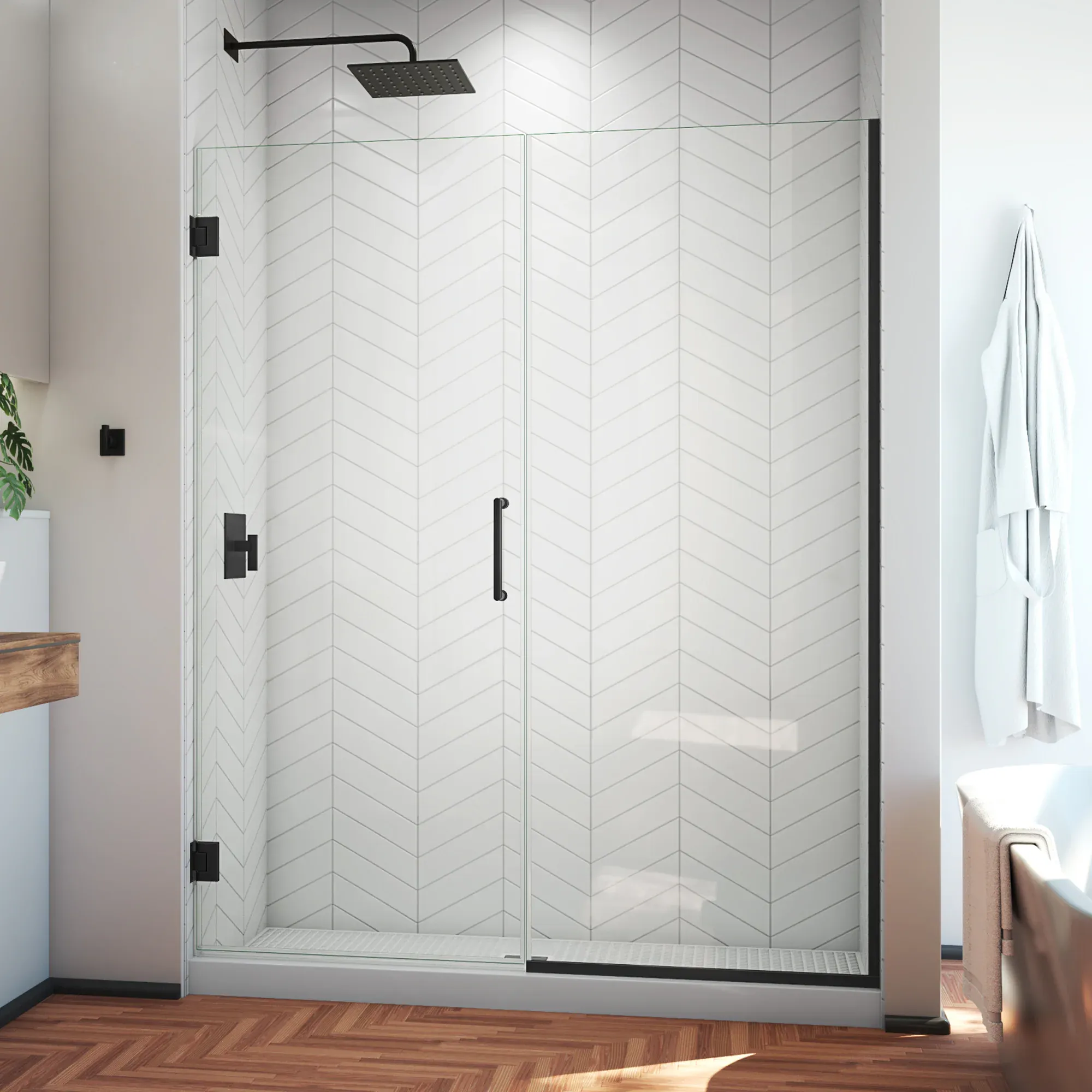 Update your bathroom with the sleek and contemporary DreamLine Unidoor Plus Frameless Hinged Shower Door. Designed to perfectly complement today’s modern trends, this elegant enclosure features premium 3/8-inch thick certified clear tempered glass. It is treated with DreamLine’s exclusive ClearMax water-repellent and stain-resistant coating, ensuring superior protection and a nearly maintenance-free experience. The solid brass wall-to-glass self-closing hinges provide a smooth, secure operation, while the fully reversible design allows for a flexible left or right door opening to best suit your specific layout. Secured by an anodized aluminum U-channel that offers built-in width and out-of-plumb adjustment, this versatile door delivers both timeless style and dependable functionality. Browse our catalog to discover how this brilliant and durable fixture can beautifully transform your daily routine.