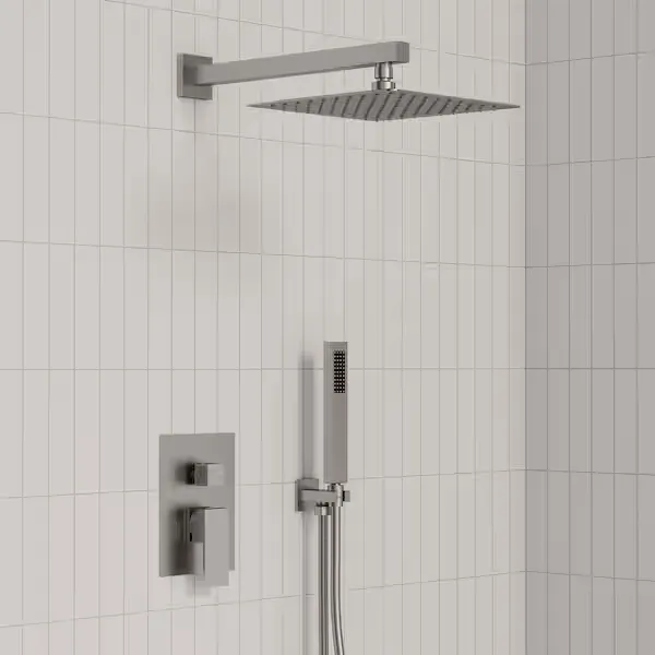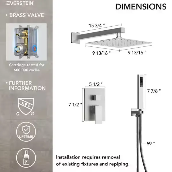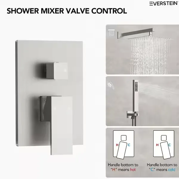 Transform your daily routine into a luxurious retreat with the EVERSTEIN Dual Shower Head System. This exceptional wall mount fixture combines elegance and versatility, allowing you to personalize your bathing experience with a large 10 inch square rain shower head and a convenient handheld sprayer. Designed to deliver an invigorating clean, it provides a powerful 2.5 gallons per minute flow rate. The system features an easy to clean silicone nozzle design that lets you wipe away mineral deposits with just the swipe of a finger. Built for lasting durability, the included pressure balanced valve prevents water hammer and protects against sudden temperature changes. The shower head can be rotated 360 degrees and tilted up or down for the perfect angle, while the single lever handle ensures effortless control over water flow and temperature. Available in a variety of elegant and corrosion resistant finishes including Brushed Nickel, Matte Black, Brushed Gold, and Chrome. Browse our catalog to discover how this multi functional shower system can elevate your bathroom decor.