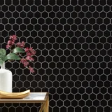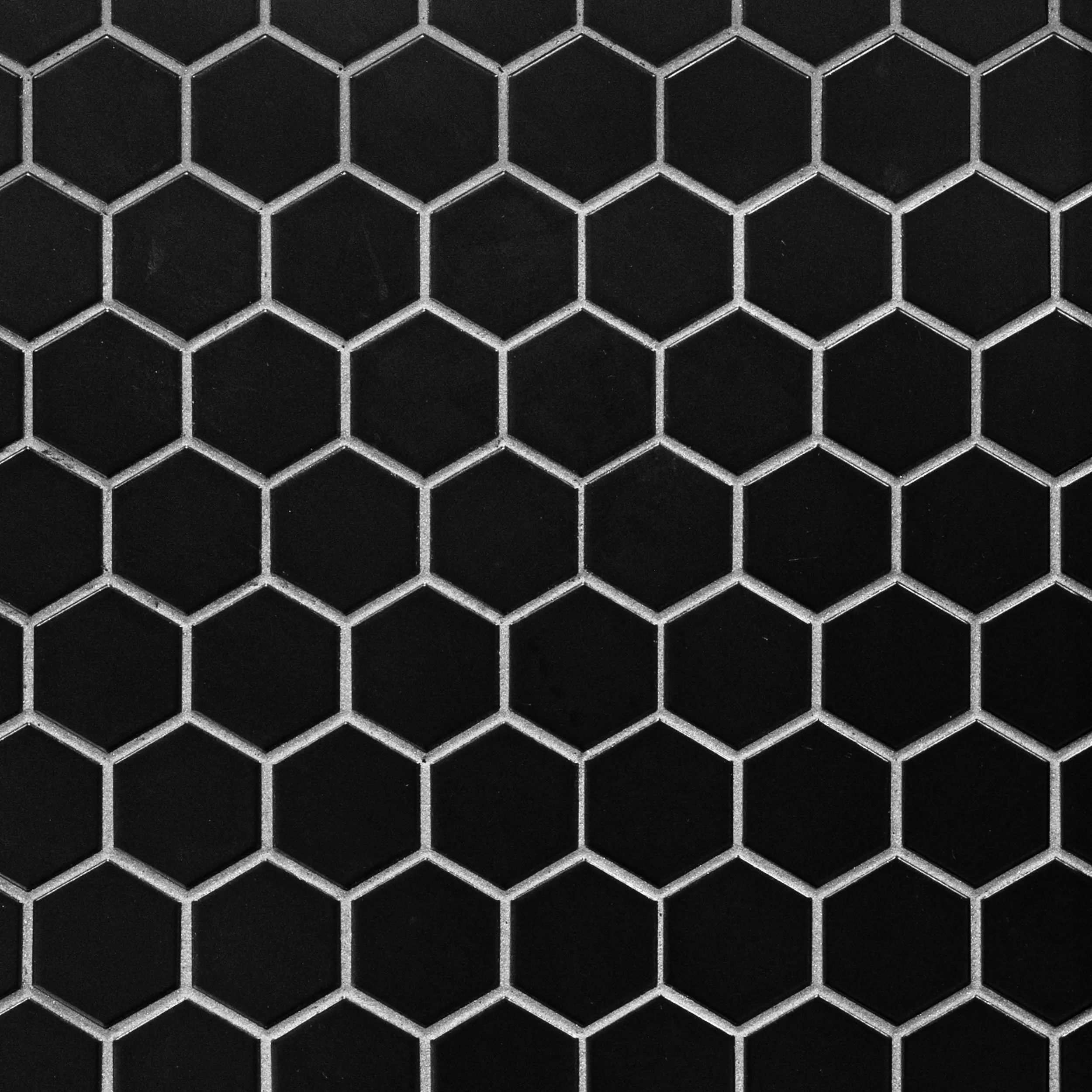 Make a bold statement with the Black Matte Hexagon Porcelain Mosaic. This 11 x 13 tile features a classic hexagon pattern in a deep black hue with a textured matte finish, adding depth and modern flair to any space. Durable and versatile, it is suitable for both indoor and outdoor use, including shower floors, walls, and pool interiors. Its small chip size and grout lines provide natural slip resistance, making it a safe and stylish choice for high-traffic and wet areas.