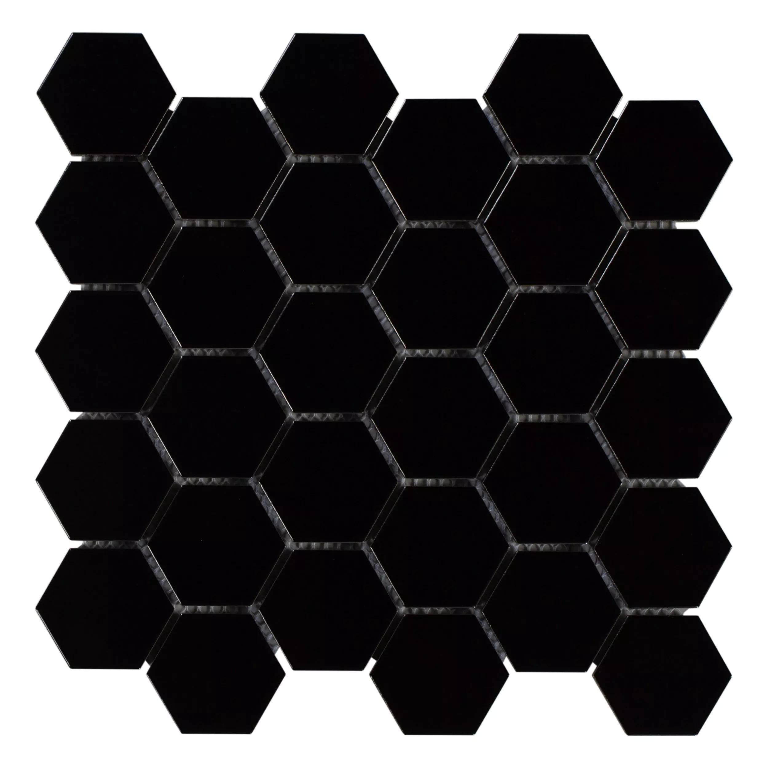 Festival Black 11″ x 13″ Matte Hexagon Porcelain Mosaic