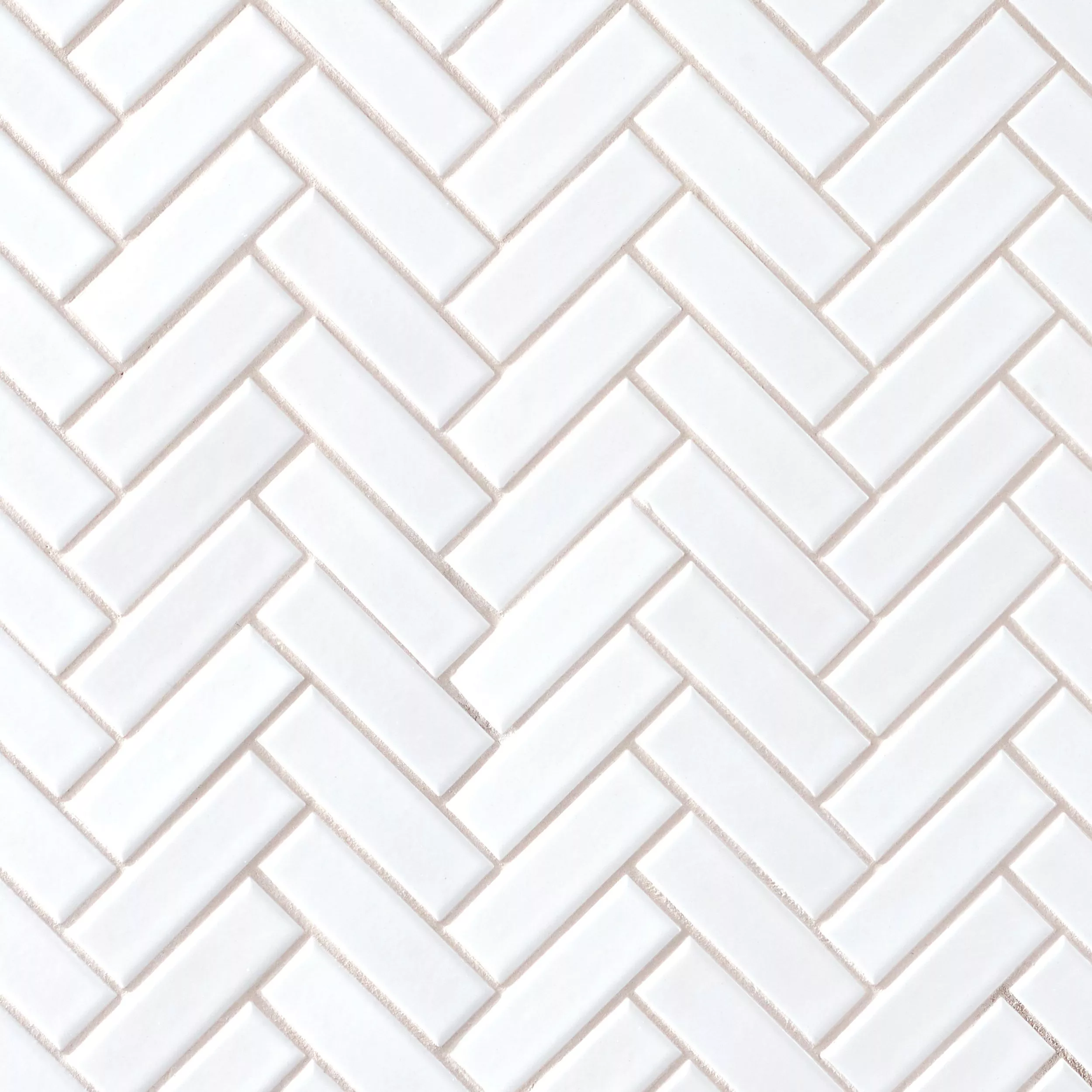 Create a timeless look with the Festival Glossy White Herringbone Porcelain Mosaic. This 11 x 12 tile features a classic 1 x 3 herringbone pattern in a bright white, high-gloss finish that reflects light and adds dimension to any space. Crafted from durable porcelain, it is water-resistant and easy to maintain, making it an ideal choice for kitchen backsplashes, shower walls, and bathroom accents. Its versatile design effortlessly complements both modern and traditional interiors, delivering a clean, polished aesthetic.
