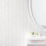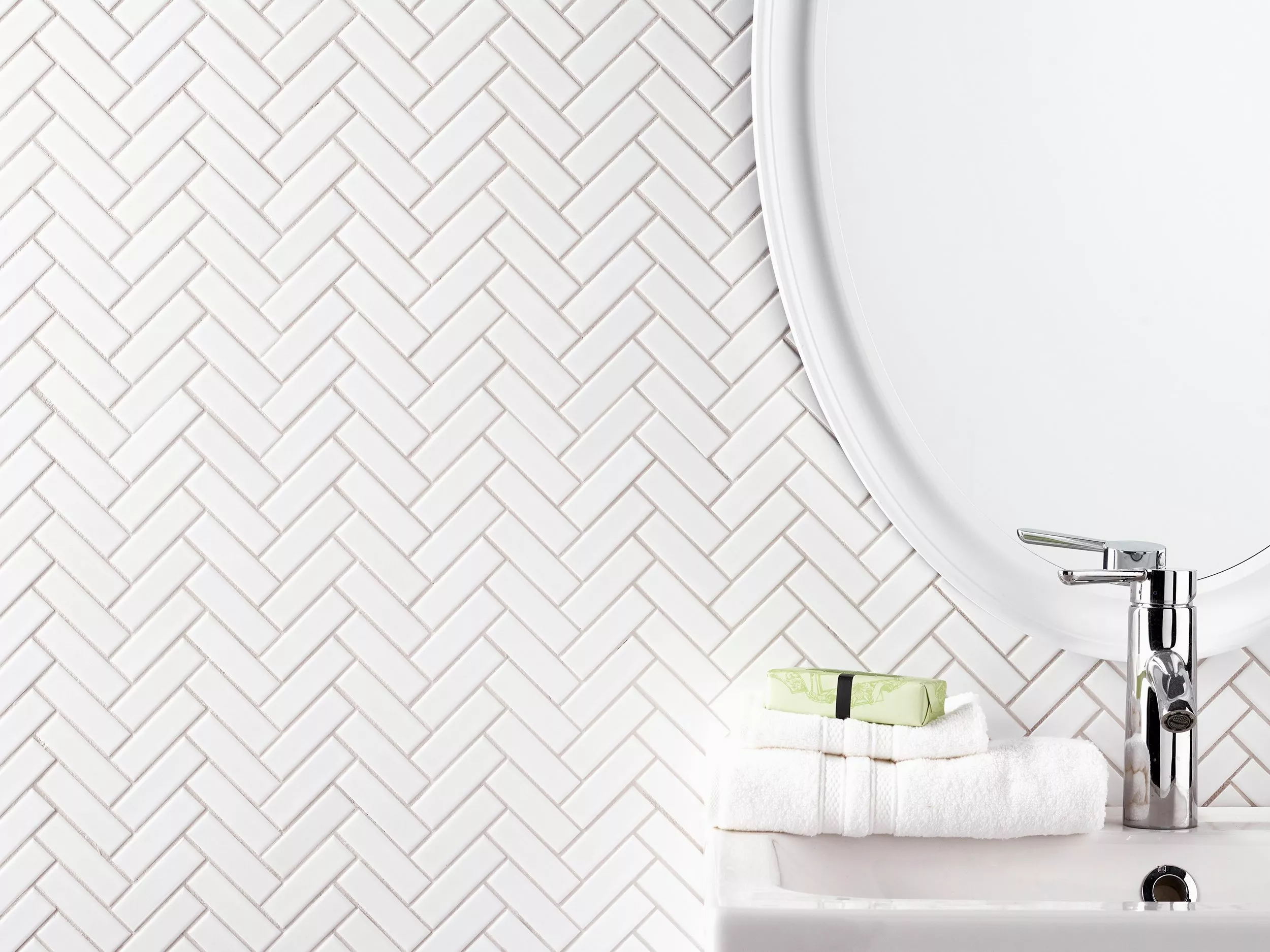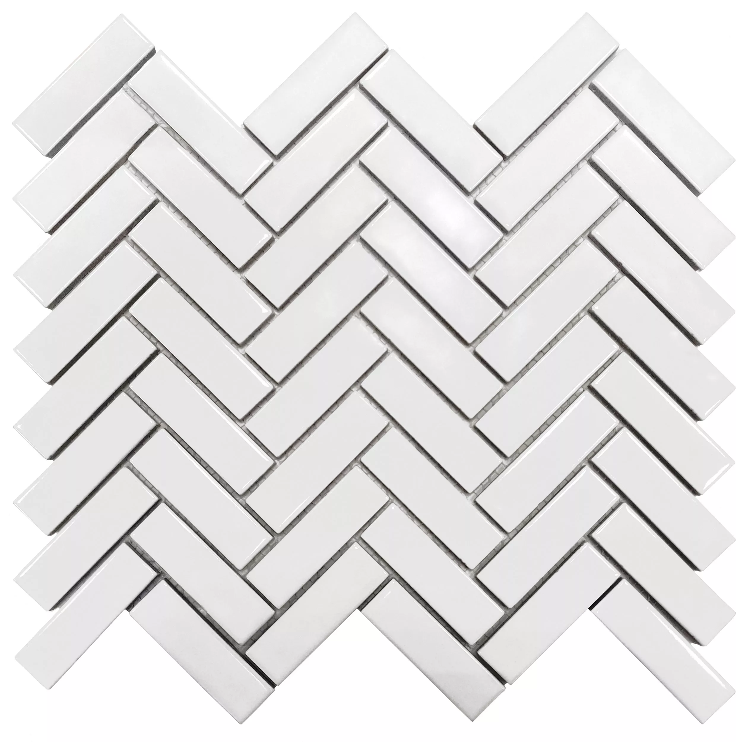 Festival Glossy White Herringbone 11″ x 12″ Porcelain Mosaic Tile
