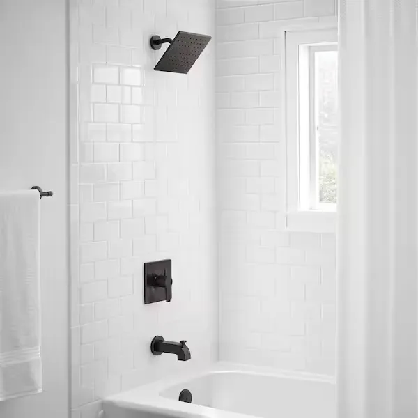 Update your bathroom with the sleek and contemporary style of the Glacier Bay Modern Tub and Shower Faucet. This complete kit provides a one stop solution for your shower upgrade, featuring a striking 8 inch square shower head equipped with improved spray force technology for an immersive and superb showering experience. The single handle design offers incredibly convenient one handed control over both water flow and temperature. Engineered for lasting reliability, the solid brass valve body incorporates a ceramic disc valve to ensure drip free performance, while the pressure balancing system provides consistent water pressure and a comfortable temperature. For added versatility, the set includes a diverter tub spout and integral stops for easy maintenance. As a WaterSense certified fixture, it operates at a highly efficient 1.8 gallons per minute, helping you reduce water usage without sacrificing the quality of your shower. Browse our catalog to discover how this bright chrome fixture can easily elevate your home.