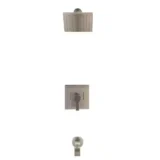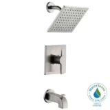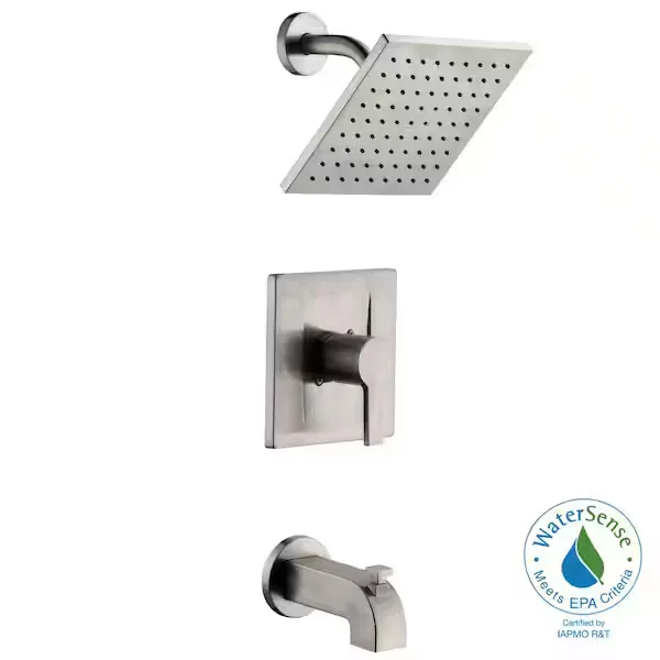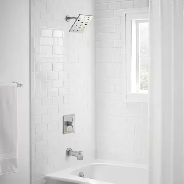 Update your bathroom with the sleek and contemporary style of the Glacier Bay Modern Tub and Shower Faucet. This complete kit provides a one stop solution for your shower upgrade, featuring a striking 8 inch square shower head equipped with improved spray force technology for an immersive and superb showering experience. The single handle design offers incredibly convenient one handed control over both water flow and temperature. Engineered for lasting reliability, the solid brass valve body incorporates a ceramic disc valve to ensure drip free performance, while the pressure balancing system provides consistent water pressure and a comfortable temperature. For added versatility, the set includes a diverter tub spout and integral stops for easy maintenance. As a WaterSense certified fixture, it operates at a highly efficient 1.8 gallons per minute, helping you reduce water usage without sacrificing the quality of your shower. Browse our catalog to discover how this bright chrome fixture can easily elevate your home.