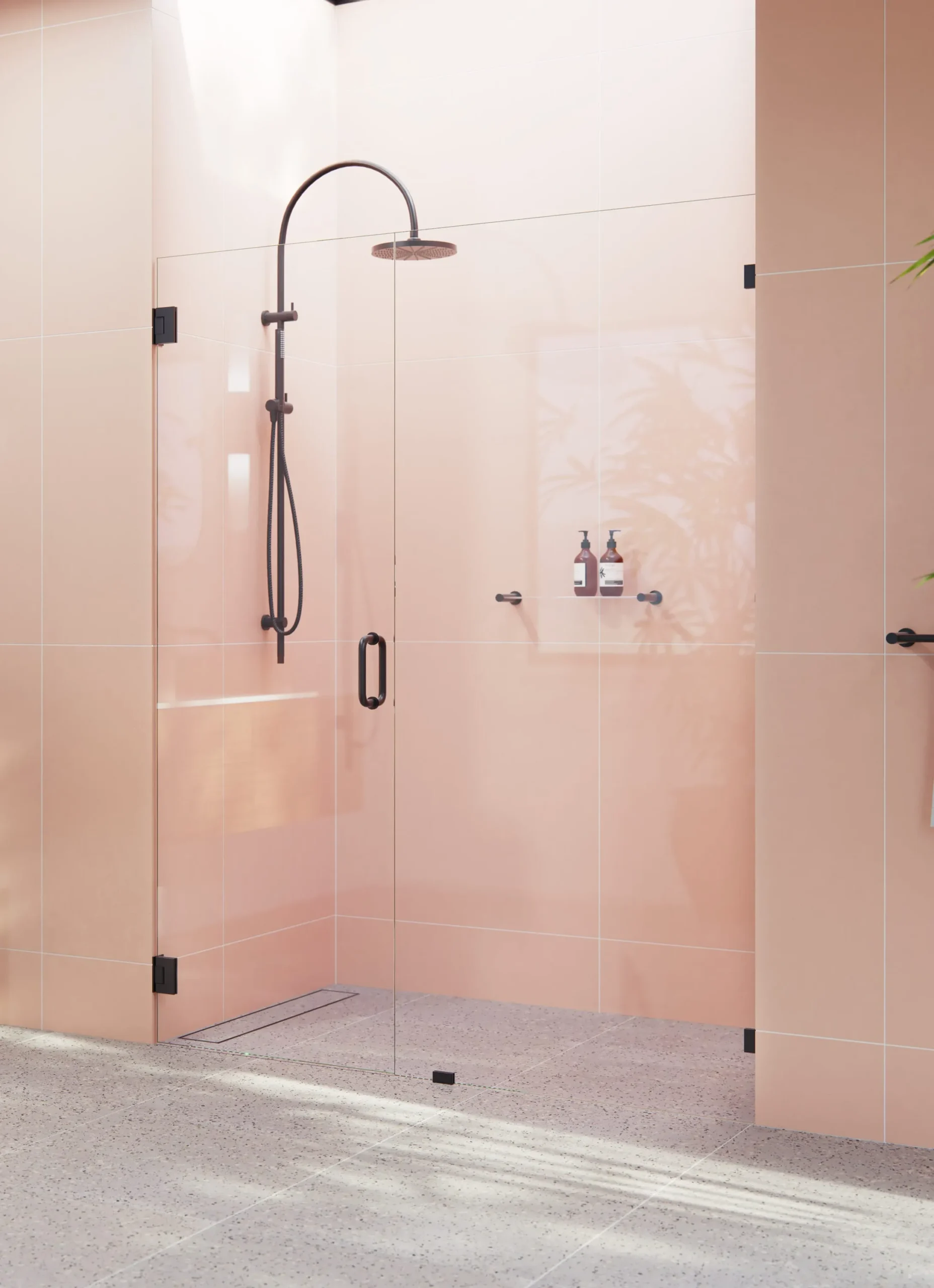 Elevate your bathroom with the sleek and modern Glass Warehouse Illume Frameless Hinged Shower Door. Designed with clean lines and a contemporary aesthetic, this stunning enclosure features premium 3/8-inch (10mm) thick ANSI certified clear tempered safety glass. For a practically maintenance-free experience, the glass is treated on both sides with EnduroShield coating, which repels water and soap residue while reducing your cleaning time by up to 90%. This dual-sided treatment also ensures the door is fully reversible, allowing for a flexible left or right-handed installation. Complemented by superior quality solid brass hardware in a bold matte black finish, this heavy-duty fixture offers both timeless style and exceptional durability. Browse our catalog to discover how the taller 78-inch height and frameless design can beautifully open up and complete your shower space.