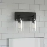 Update your bathroom decor with the sleek and highly versatile Hampton Bay Regan 2 Light Vanity Light. Featuring a beautifully classic profile, this wall mounted fixture adds a warm and inviting glow to your space through its beautifully shaped clear glass shades. Designed to complement a wide variety of interior styles, it perfectly balances modern simplicity with timeless charm. The durable construction is built to withstand the damp conditions of your bathroom while maintaining its stunning finish. Engineered for complete installation flexibility, this vanity light can be securely mounted with the glass shades facing either upwards or downwards to best suit your lighting preferences and vanity mirror layout. Browse our catalog to discover how this radiant and dependable fixture can brilliantly transform your daily routine.