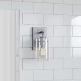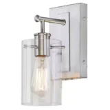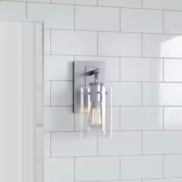Update your bathroom decor with the sleek and highly versatile Hampton Bay Regan 1 Light Vanity Light. Featuring a beautifully classic profile, this wall mounted fixture adds a warm and inviting glow to your space through its beautifully shaped clear glass shades. Designed to complement a wide variety of interior styles, it perfectly balances modern simplicity with timeless charm. The durable construction is built to withstand the damp conditions of your bathroom while maintaining its stunning finish. Engineered for complete installation flexibility, this vanity light can be securely mounted with the glass shades facing either upwards or downwards to best suit your lighting preferences and vanity mirror layout. Browse our catalog to discover how this radiant and dependable fixture can brilliantly transform your daily routine.