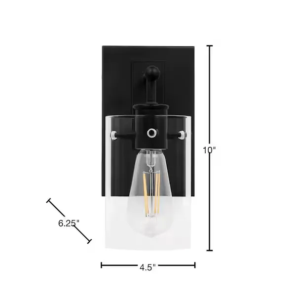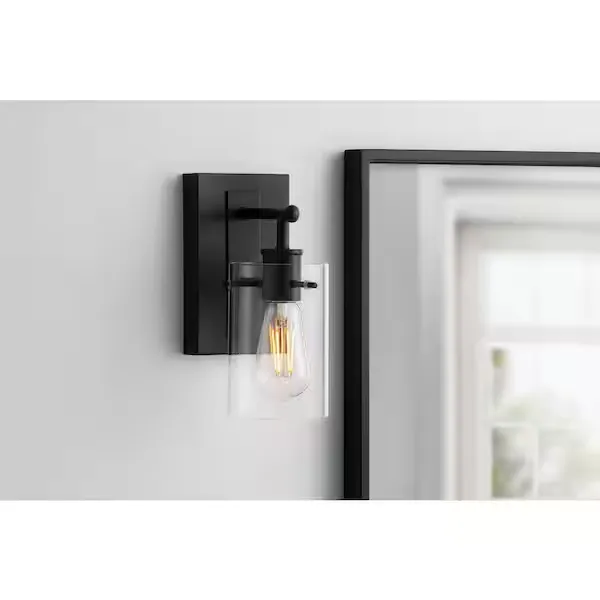 Hampton Bay Regan 4.5 in. 1-Light Matte Black Bathroom Vanity Light