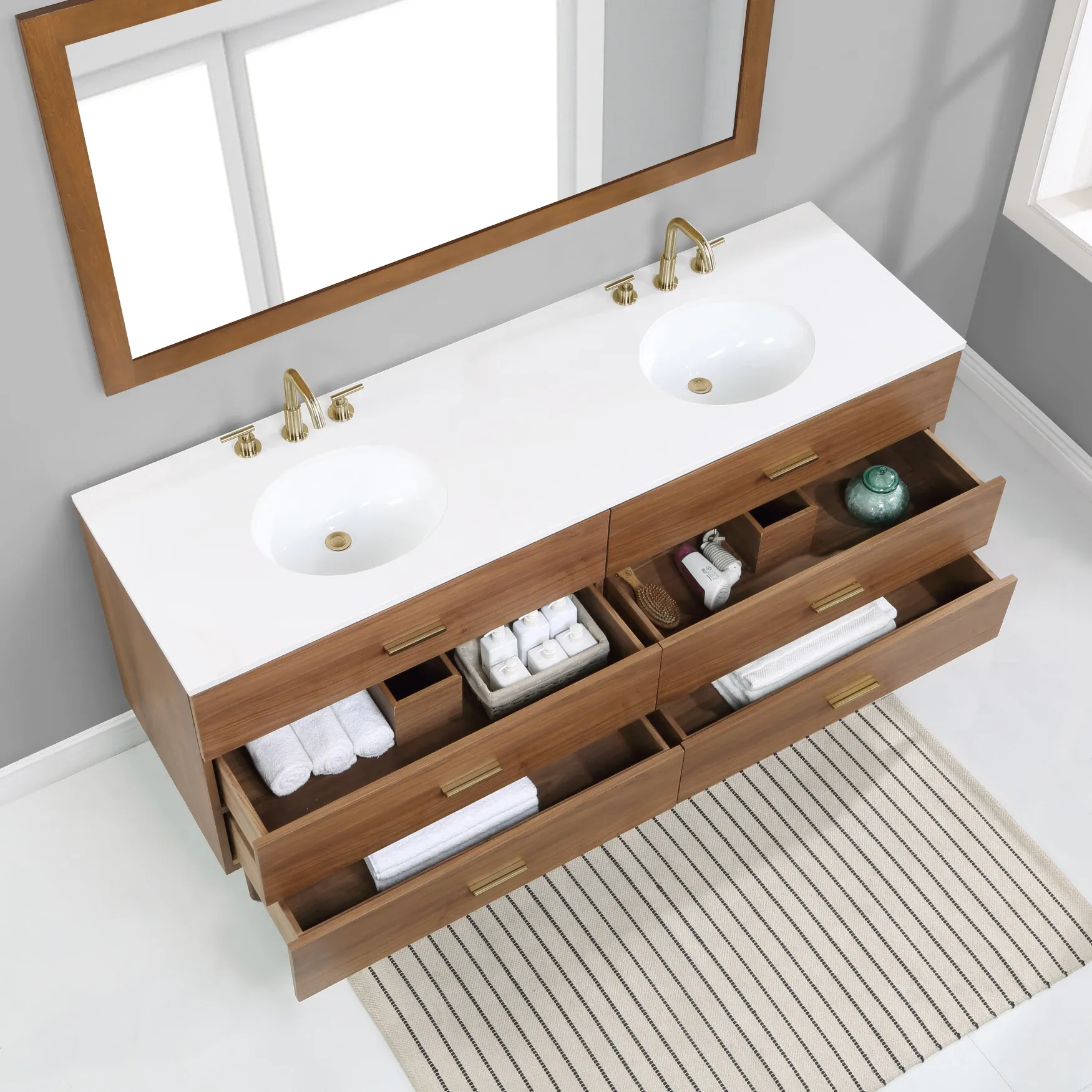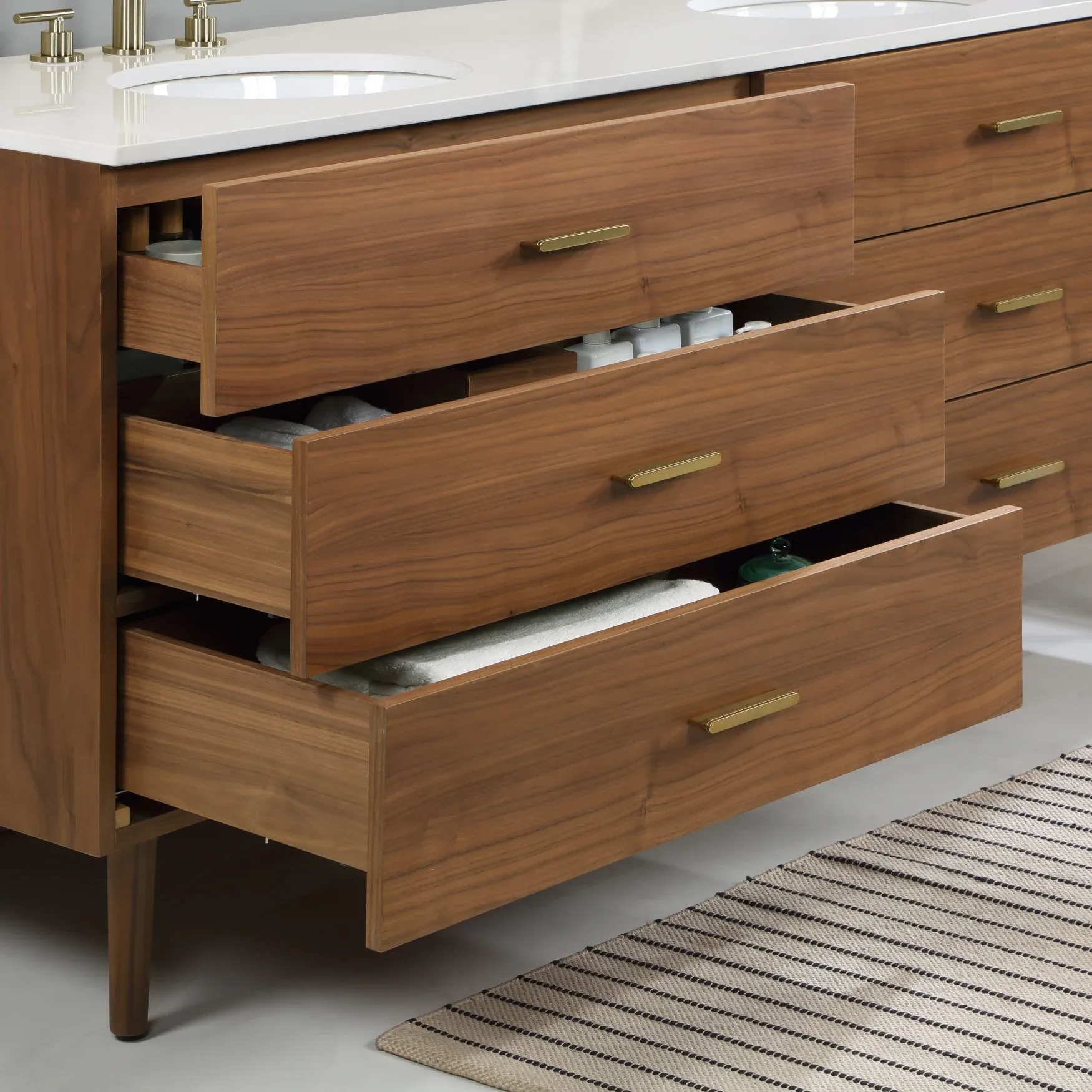 Highbury Furnishings Haoqi 72-in Walnut Undermount Double Sink Bathroom Vanity with White Quartz Top