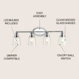 Elevate your bathroom aesthetic with the versatile and elegant JONATHAN Y Beverly Farmhouse Vanity Light. Designed to seamlessly blend rustic, cottage, and classic industrial styles, this wall mounted fixture provides a beautifully warm glow for your daily routines. It features stunning bell shaped seeded glass shades that add a touch of vintage charm above your vanity or kitchen sink. The fixture comes complete with eco friendly Edison style LED bulbs that cast a cozy 2700K light, immediately creating an inviting atmosphere. Built with a durable metal backplate and rated for damp locations, it is a highly reliable choice for bathroom environments. Capable of being paired with compatible dimmers, it allows you to easily control the brightness to perfectly suit your preferences. Browse our catalog to discover how this brilliant and timeless fixture can instantly transform your space.