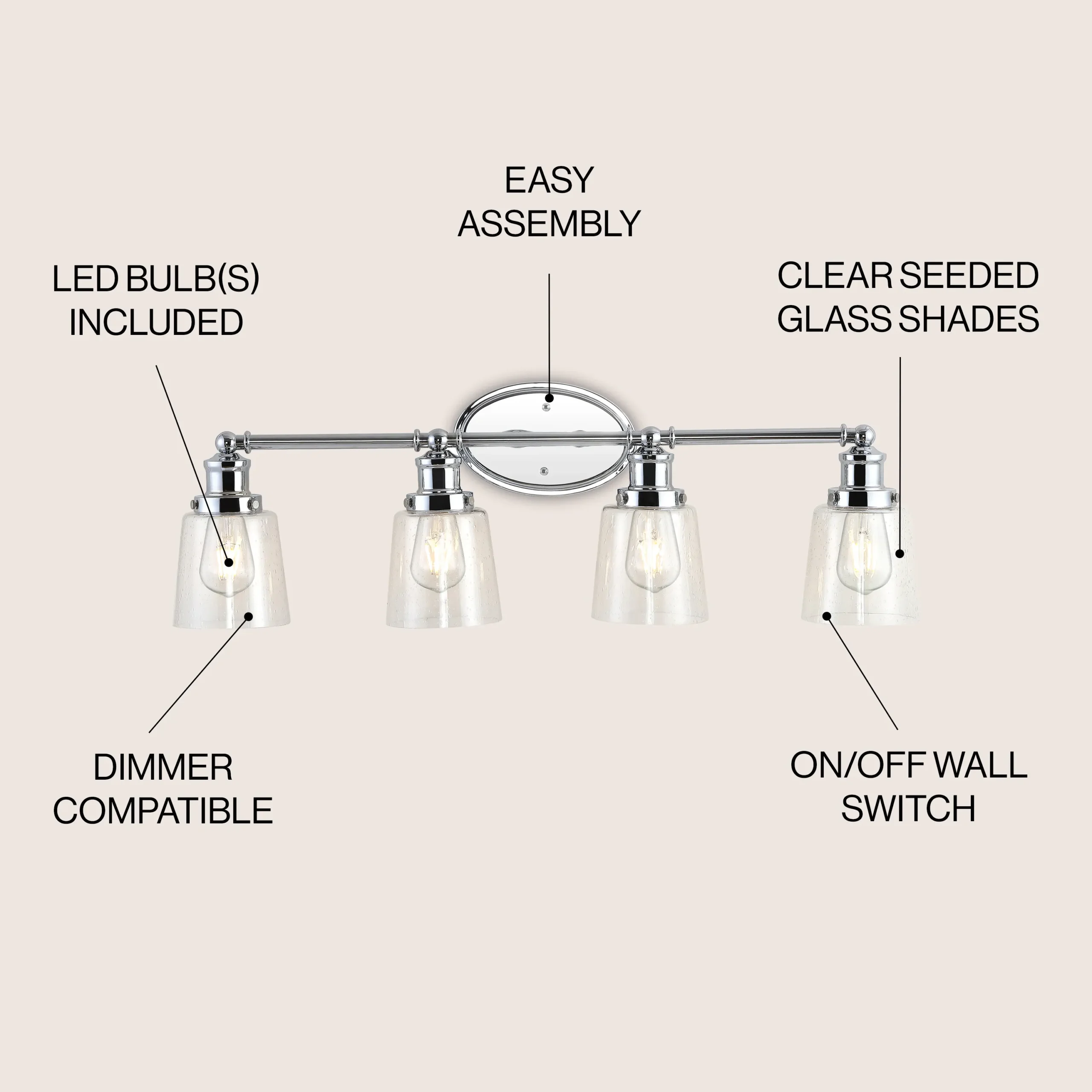 JONATHAN Y Beverly 32 in. 4 Light Polished Chrome Farmhouse Bathroom Vanity Light