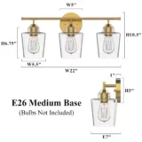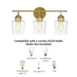 KAWOTI 22 in. 3-Light Antique Brass Bathroom Vanity Light