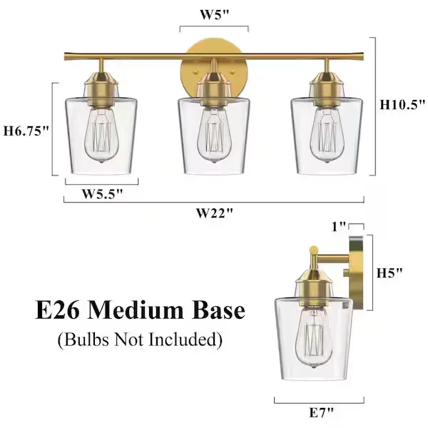 Add a touch of modern simplicity to your bathroom with the KAWOTI Vanity Light. This highly versatile wall mounted fixture features an elegantly designed sturdy frame paired with clear, hand blown glass shades that beautifully showcase your chosen bulbs. Designed to provide ample illumination for your daily grooming routine, the gently tapered cylindrical shades feature an open bottom for quick and easy bulb changes. It is fully compatible with standard E26 base bulbs and dimmer switches, allowing you to easily adjust the brightness for early mornings or late nights. Engineered for complete installation flexibility in damp indoor environments, this reliable fixture can be securely mounted with the shades facing either upward or downward to perfectly suit your vanity layout. Browse our catalog to discover how this classic and clean design can beautifully elevate your space.
