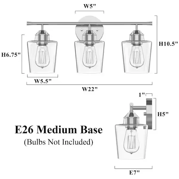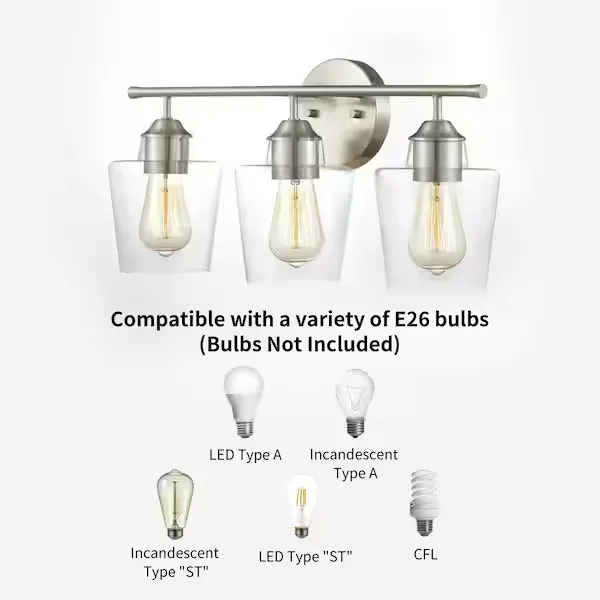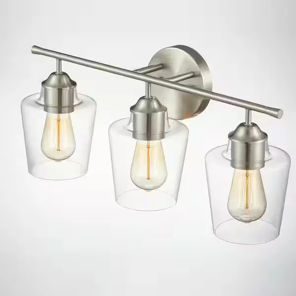 Add a touch of modern simplicity to your bathroom with the KAWOTI Vanity Light. This highly versatile wall mounted fixture features an elegantly designed sturdy frame paired with clear, hand blown glass shades that beautifully showcase your chosen bulbs. Designed to provide ample illumination for your daily grooming routine, the gently tapered cylindrical shades feature an open bottom for quick and easy bulb changes. It is fully compatible with standard E26 base bulbs and dimmer switches, allowing you to easily adjust the brightness for early mornings or late nights. Engineered for complete installation flexibility in damp indoor environments, this reliable fixture can be securely mounted with the shades facing either upward or downward to perfectly suit your vanity layout. Browse our catalog to discover how this classic and clean design can beautifully elevate your space.