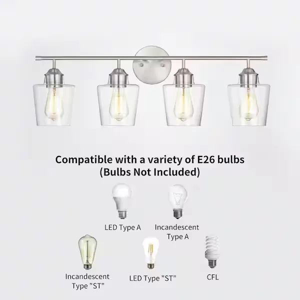 KAWOTI 30 in. 4-Light Brushed Nickel Bathroom Vanity Light