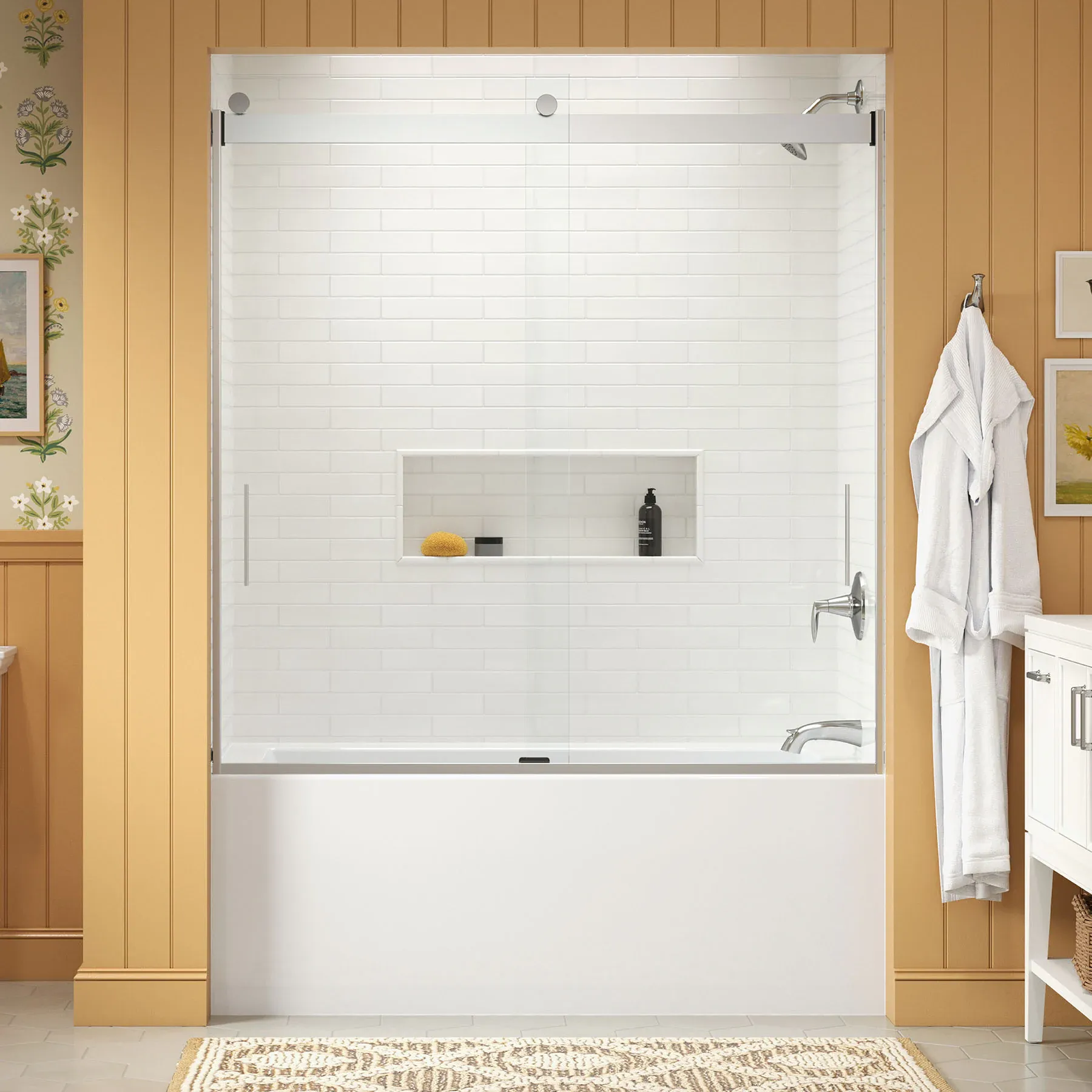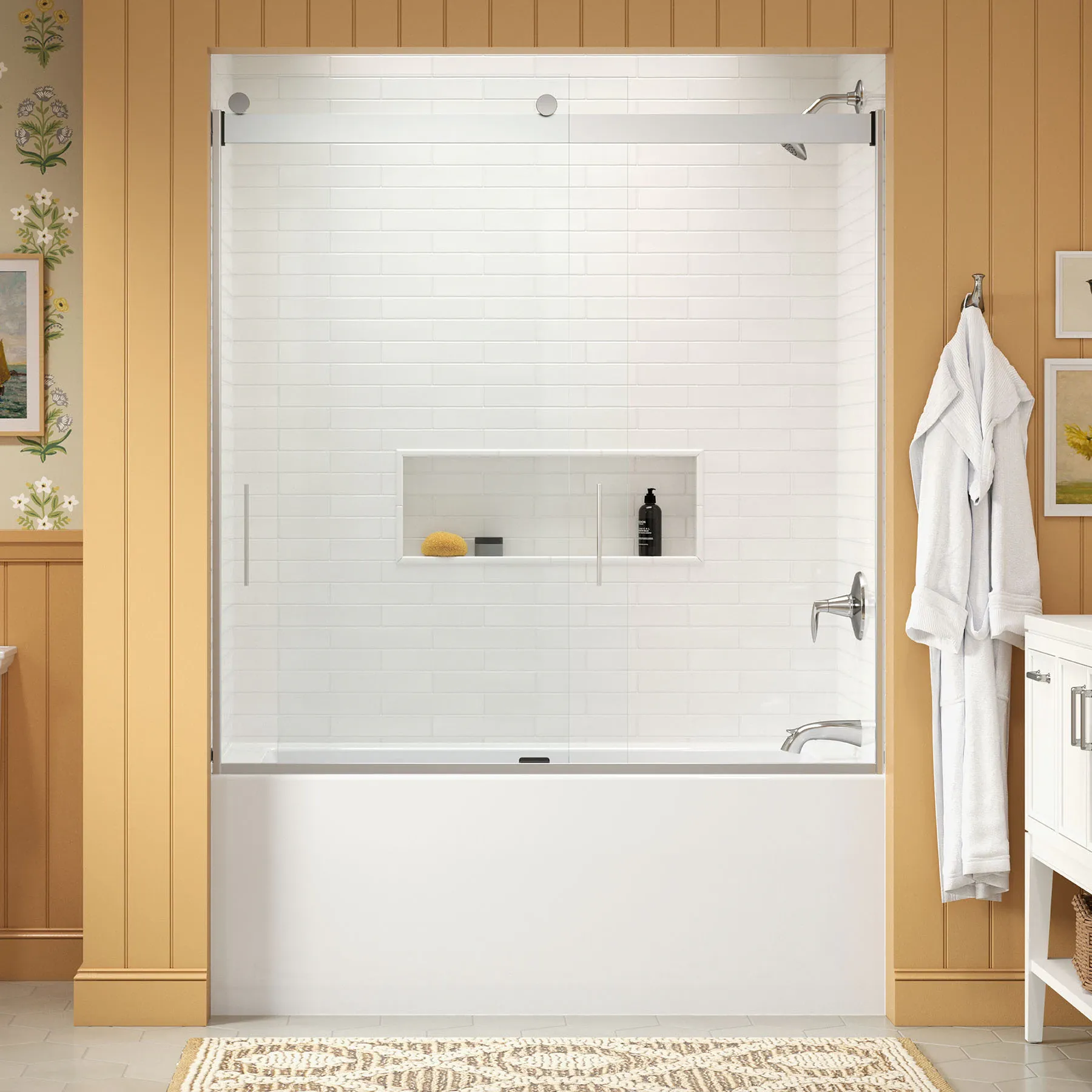 KOHLER Levity 60 in. W Bright Silver Frameless Bypass Sliding Bathtub Door
