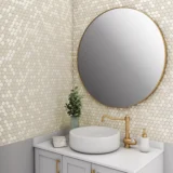 Create a clean and timeless look with the La Belle Purity Hexagon Ceramic Mosaic. This 10 x 11 tile sheet features classic 1.5-inch bright white hexagons, offering a versatile geometric design that brightens any space. Crafted from durable ceramic, it is suitable for a variety of applications, including bathroom floors, shower floors, and backsplashes. Its uniform color and shape provide a fresh, modern aesthetic that pairs effortlessly with both contemporary and traditional decor.