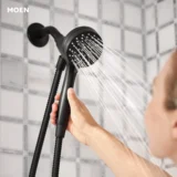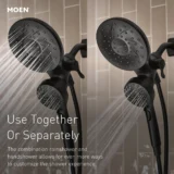 Transform your daily routine with the Moen Magnetix Engage Dual Shower Head Combo, a perfect blend of transitional style and powerful functionality. Inspired by patterns found in nature, this dual head system features a beautifully tailored Matte Black finish that easily complements any modern bathroom decor. It offers the ultimate in showering flexibility with six distinct, adjustable spray settings and a high pressure 2.5 gallons per minute flow rate. The innovative Magnetix docking system allows you to effortlessly detach and securely replace the round handheld shower head with a simple snap. Designed for incredible convenience, it includes a 60 inch kink free metal hose that extends your reach, making it perfect for rinsing off or cleaning the shower. Equipped with easy to clean silicone nozzles, this system is rigorously tested beyond industry standards to withstand real world wear and tear. Browse our catalog to discover how this lustrous and ageless fixture can elevate your next bathroom upgrade.