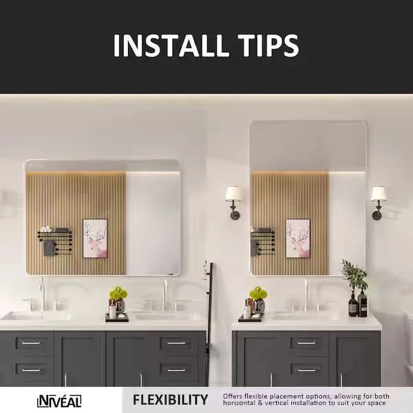 Bring a touch of contemporary minimalism to your space with the niveal Rectangular Framed Wall Bathroom Vanity Mirror. Designed to seamlessly blend classic aesthetics with an industrial style, this versatile piece is a perfect addition to any bathroom remodel. It features a stunning 4 mm tempered mirror that is specially crafted to prevent edge corrosion, ensuring long lasting clarity and an impeccable reflection. The beautifully designed anodized aluminum frame boasts an ultra thin 1.5 inch profile with a rust free and chip free finish, guaranteeing excellent quality for years to come. Designed for total placement flexibility, this mirror can be securely mounted either horizontally or vertically to perfectly suit your vanity layout. With all necessary mounting hardware included, installation is straightforward and simple. Browse our catalog to discover how this elegant and highly reliable mirror can elevate your daily routine.
