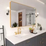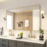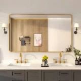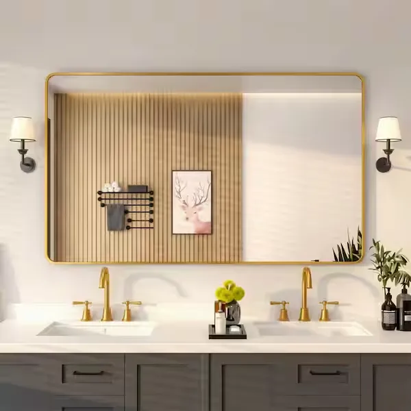 Niveal 60 in. W x 36 in. H Rectangular Framed Wall Bathroom Vanity Mirror in Brass