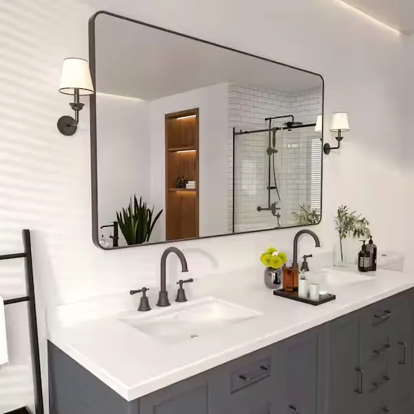 Bring a touch of contemporary minimalism to your space with the niveal Rectangular Framed Wall Bathroom Vanity Mirror. Designed to seamlessly blend classic aesthetics with an industrial style, this versatile piece is a perfect addition to any bathroom remodel. It features a stunning 4 mm tempered mirror that is specially crafted to prevent edge corrosion, ensuring long lasting clarity and an impeccable reflection. The beautifully designed anodized aluminum frame boasts an ultra thin 1.5 inch profile with a rust free and chip free finish, guaranteeing excellent quality for years to come. Designed for total placement flexibility, this mirror can be securely mounted either horizontally or vertically to perfectly suit your vanity layout. With all necessary mounting hardware included, installation is straightforward and simple. Browse our catalog to discover how this elegant and highly reliable mirror can elevate your daily routine.