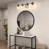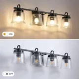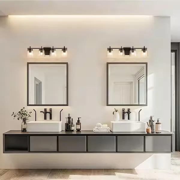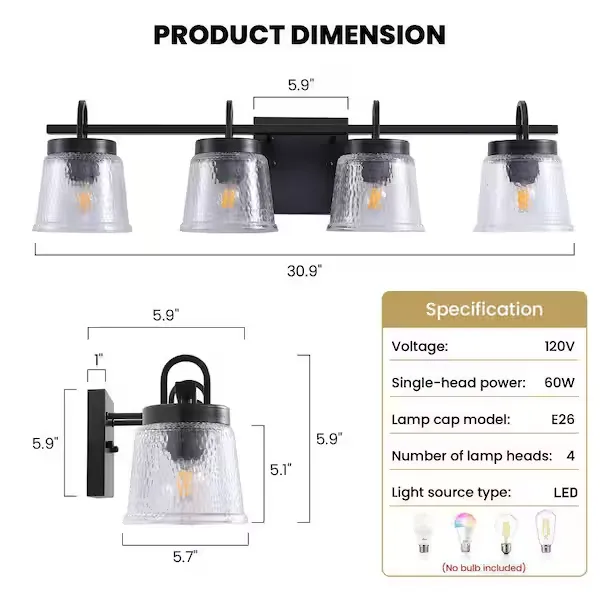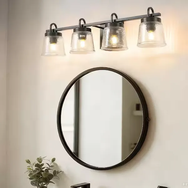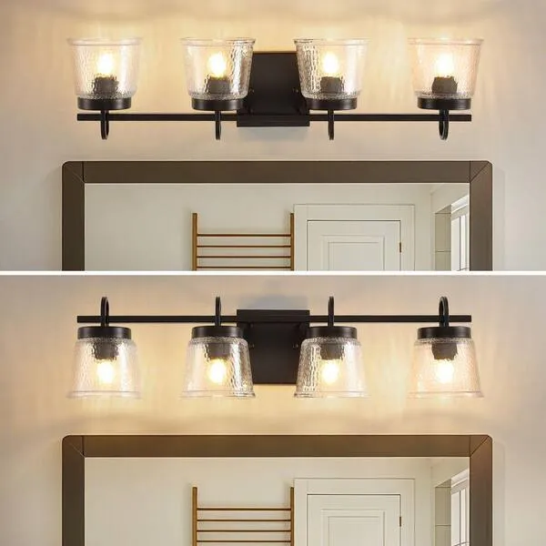 Add a touch of modern elegance to your space with the Pacific Core 4 Light Vanity Light. Crafted with a highly durable metal frame and finished with a moisture resistant and rust proof powder coating, this fixture is perfectly designed for damp bathroom environments. It features uniquely textured water ripple glass shades that beautifully diffuse and refract light, creating a shimmering, even glow that minimizes facial shadows during your grooming routine. Compatible with standard E26 LED bulbs and dimmer switches, it allows you to easily customize the brightness to suit your specific lighting needs. Designed for a straightforward installation, this stylish and vibrant wall light will instantly elevate the aesthetic of your vanity or powder room. Browse our catalog to discover how this brilliant fixture can beautifully enhance your home.
