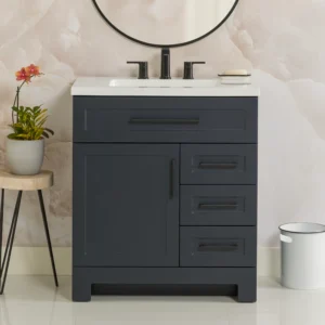 Style Selections Cauley 30-in Black Single Sink Bathroom Vanity with White Cultured Marble Top
