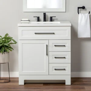 Style Selections Cauley 30-in True White Single Sink Bathroom Vanity with White Cultured Marble Top
