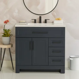 Style Selections Cauley 36-in Navy Blue Single Sink Bathroom Vanity with White Cultured Marble Top