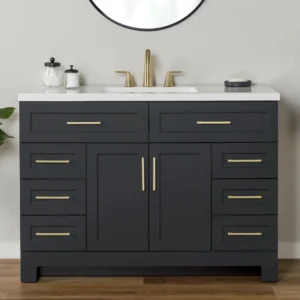 Style Selections Cauley 48-in Black Single Sink Bathroom Vanity with White Cultured Marble Top