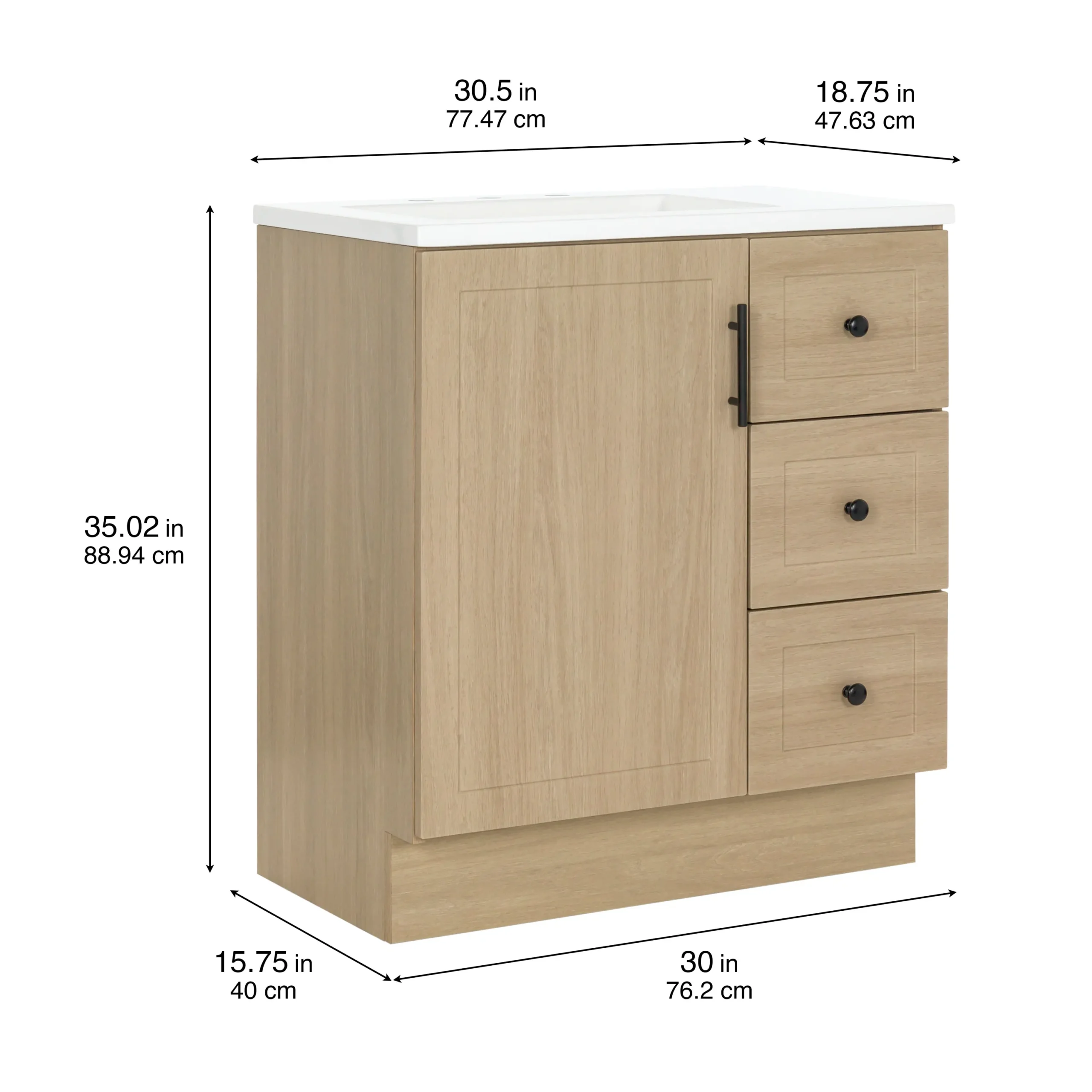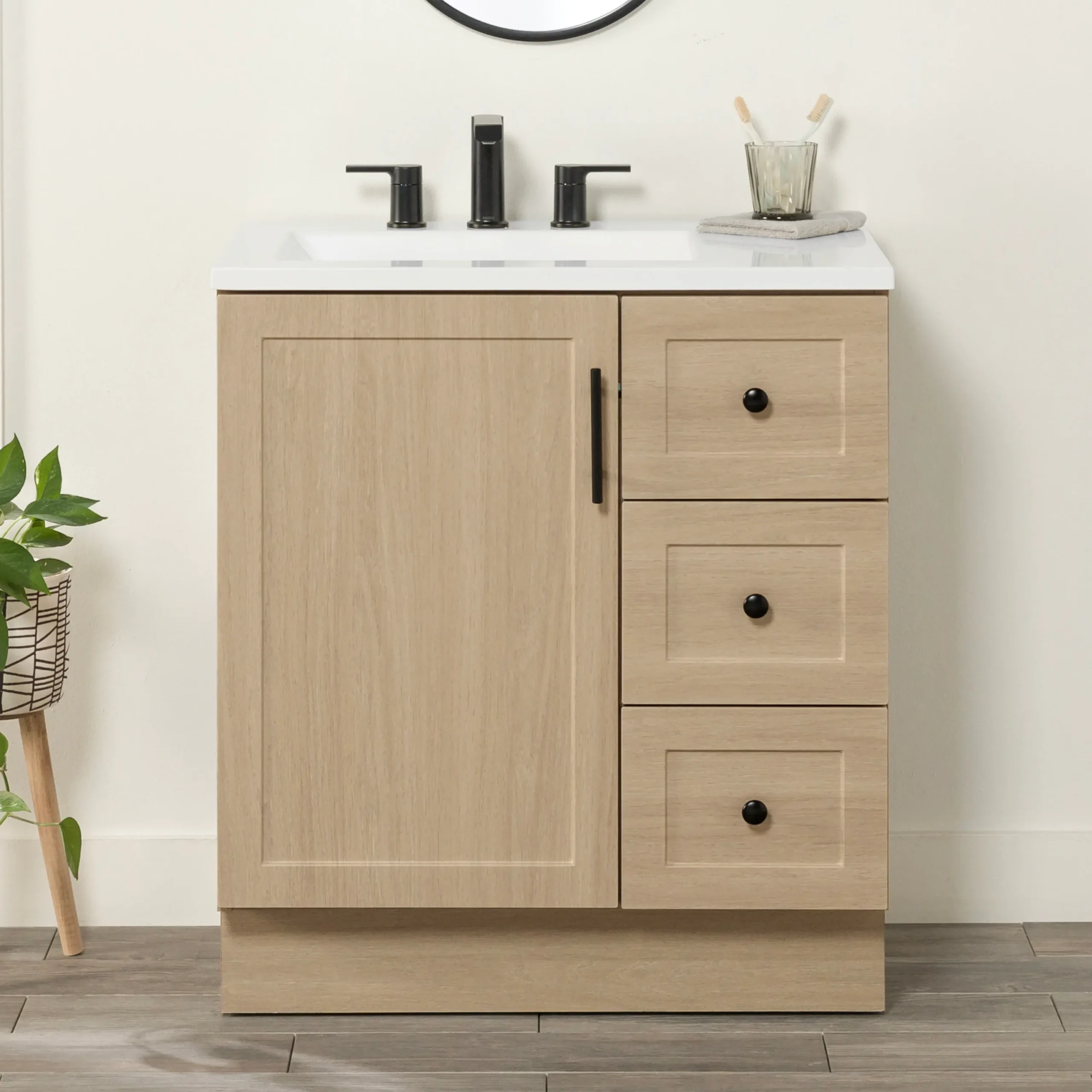 Project Source Davies 30-in Beige Oak Single Sink Bathroom Vanity with White Cultured Marble Top