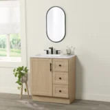 Refresh your space with the Project Source Davies Bathroom Vanity collection, a highly practical choice offering dependable style and reliable quality. Built for daily use, this vanity collection provides a simple and effective way to upgrade any bathroom remodel project. The durable engineered wood base features clean lines and comes paired with a soft white cultured marble top containing an easy to clean integrated rectangular sink. Choose from an array of beautiful finishes including Light Gray, True White, and Beige Oak to perfectly match your aesthetic. Ranging in size from a compact 24 inch model to a spacious 36 inch option, these freestanding vanities fit exceptionally well in half baths, guest bathrooms, or smaller master suites. Designed for functionality, the collection includes full overlay recessed panel doors and full extension drawers for generous storage, all beautifully accented by satin nickel hardware. Browse our catalog to explore the sizes and finishes that will seamlessly complete your next home renovation.